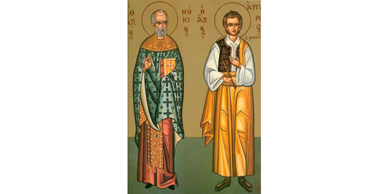 Sfântul Mucenic Mochie a trăit în sec. al IV-lea, a fost preot în Amfipol şi a suferit mucenicia în vremea împăratului roman Diocleţian. Pentru că-L propovăduia cu mult curaj pe Hristos, Mochie a fost prins şi supus la multe chinuri. El a fost aruncat în foc şi a fost dat fiarelor sălbatice, dar a scăpat nevătămat.