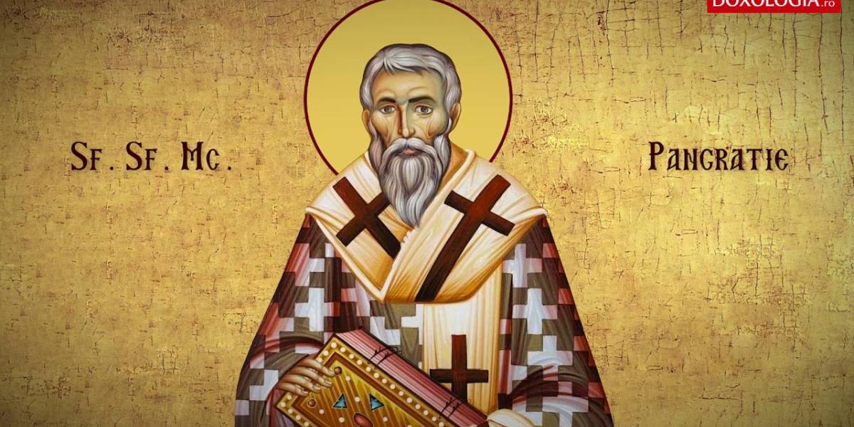 Sfântul Mucenic Pangratie s-a născut în cetatea Antiohiei și a fost contemporan cu Sfinții Apostoli. A ajuns împreună cu părinții săi la Ierusalim, pentru a asculta cuvintele și pentru a vedea minunile Domnului Iisus Hristos. În Ierusalim, Sfântul Pangratie s-a făcut cunoscut Sfântului Apostol Petru și a primit Sfântul Botez imediat după Înălțarea Domnului la cer. Mai târziu, după ce a viețuit un timp într-o peșteră, Sfântul Pangratie a fost hirotonit episcop al Tavromeniei (Taomirna), în Sicilia, de către Sfântul Apostol Petru. Ajuns episcop, Pangratie a dărâmat idolii și i-a convertit pe mulți păgâni la creștinism.