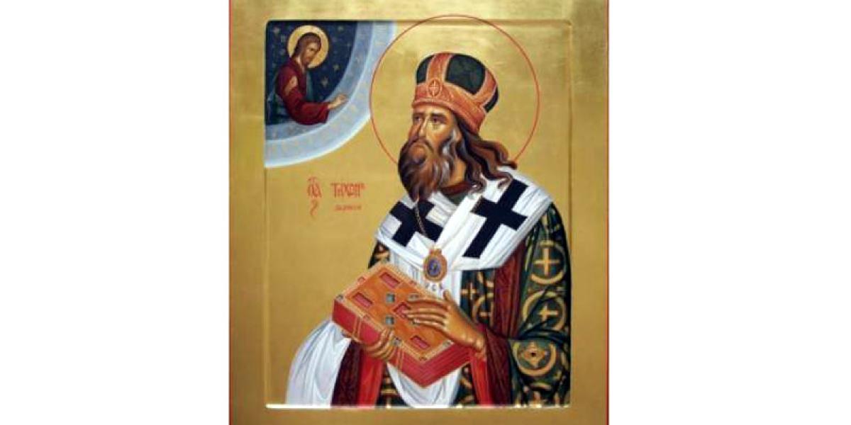 Sfântul Tihon a convertit mulţi păgâni la credinţa în Hristos, dărâmând multe temple şi ridicând biserici pe locul lor.