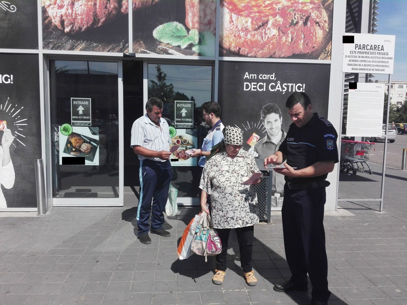 Oamenii legii atrag atenţia persoanelor aflate la cumpărături să pună toate articolele pe care doresc să le achiziţioneze din magazin pe banda casei de marcat, deoarece, în caz contrar, agenţii de pază ai societăţii vor sesiza poliţia, care le va întocmi dosar penal pentru infracţiunea de furt, indiferent de valoarea bunului sustras.