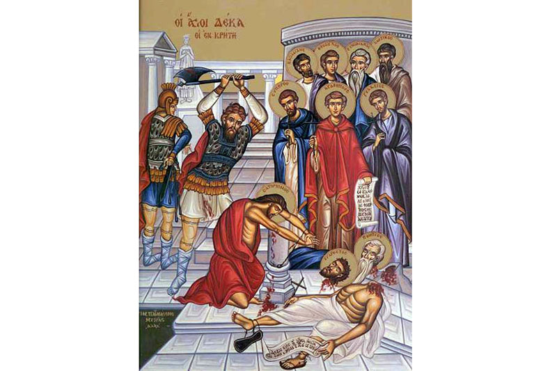Sfinţii 10 Mucenici din Creta (Teodul, Satornin, Evpor, Ghelasie, Evnichian, Zotic, Agatopus, Vasilide, Evarest şi Pompie) au pătimit în jurul anului 250 d.H., în Insula Creta, din porunca împăratului Decius. Pentru că au refuzat să se închine idolilor păgâni, celor 10 sfinţi li s-au tăiat capetele. Înainte de a trece la Domnul, au rostit cu toţii această rugăciune: