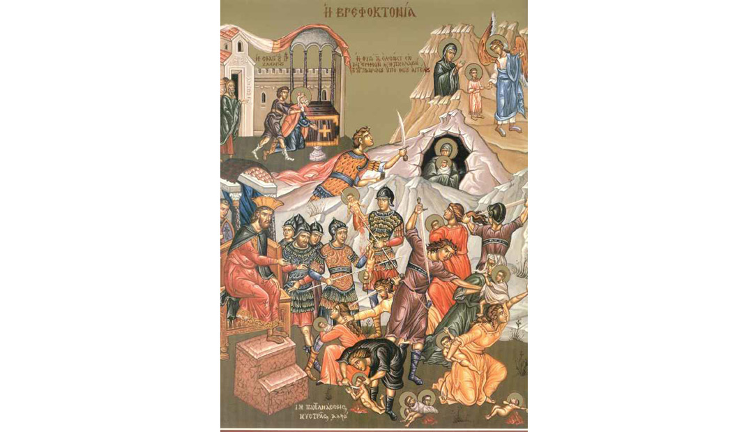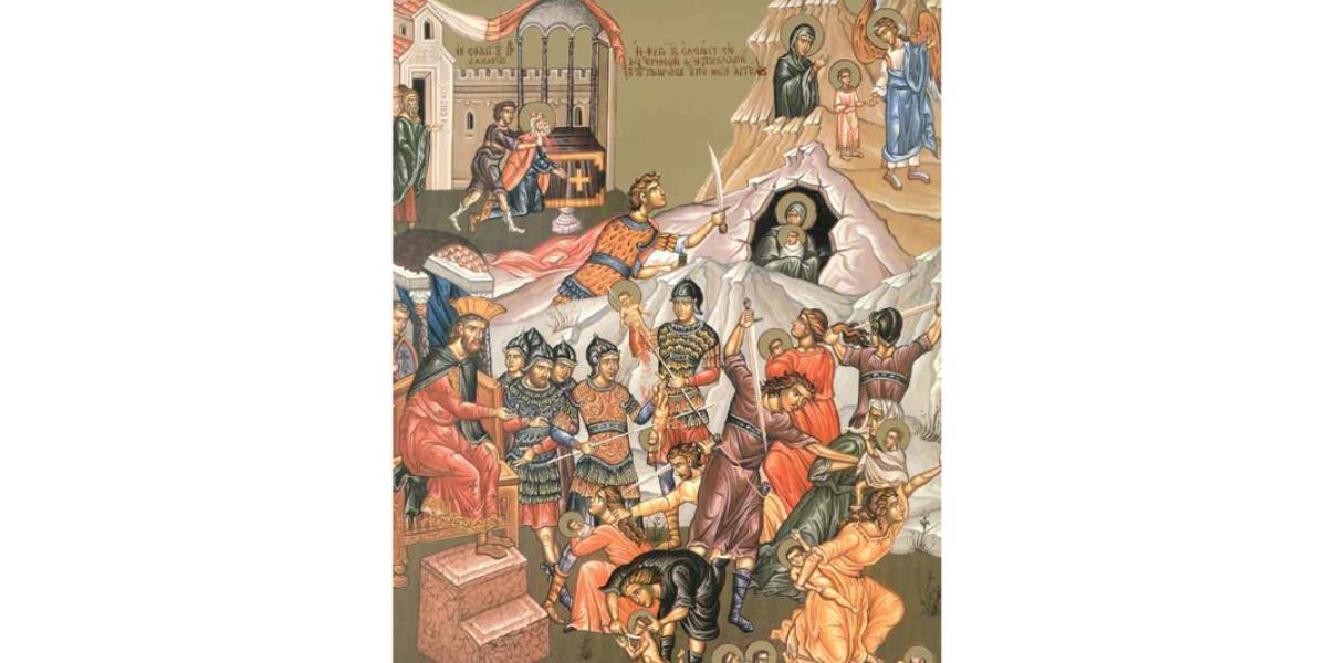 La vremea aceea, mergând cei trei Magi de la Răsărit în Betleemul Iudeii, să se închine Lui Hristos, nu s-au mai întors la Ierusalim ca să-l anunţe pe Irod unde se află dumnezeiescul Prunc. La porunca îngerului Lui Dumnezeu, Magii de la Răsărit s-au întors cu pace în ţara lor, urmând o altă cale. Văzând că a fost înşelat de magi, regele Irod s-a mâniat foarte tare şi a poruncit uciderea tuturor pruncilor de parte bărbătească din Beleemul Iudeii şi din împrejurimi, gândind că, astfel, îl va ucide pe noul Împărat. Astfel, s-a împlinit proorocia: “Glas se aude în Rama, bocet şi plângere amară. Rahila îşi plânge copiii” (Proorocul Ieremia 31: 15; Evanghelia după Matei 2: 18).