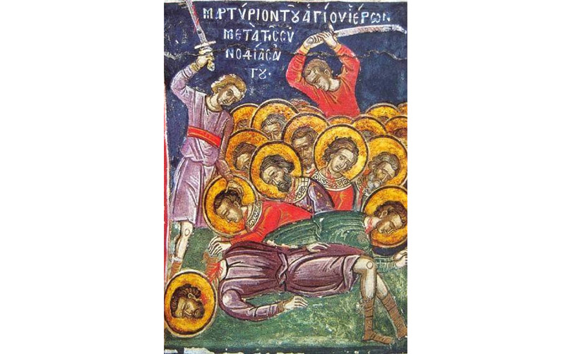 Sfinţii 33 de Mucenici din Melitina, pe care-i cinstim astăzi, au trăit şi s-au nevoit pe vremea împăraţilor romani (păgâni) Diocleţian şi Maximian. Sfântul Mucenic Ieron, primul dintre aceştia, s-a născut în Tyana Capadociei, într-o familie de creştini. Refuzând să intre în serviciul militar şi alungându-i pe cei trimişi să-l recruteze - deoarece nu voia să-şi părăsească mama, care era oarbă - şi pentru că nu a vrut să aducă jertfe idolilor (aşa cum le era impus militarilor) Ieron a fost arestat şi, odată cu el, şi alţi creştini. Cu toţii au mărturisit credinţa în Iisus Hristos, afară de unul, Victor, ruda lui Ieron, care s-a lepădat de Domnul.