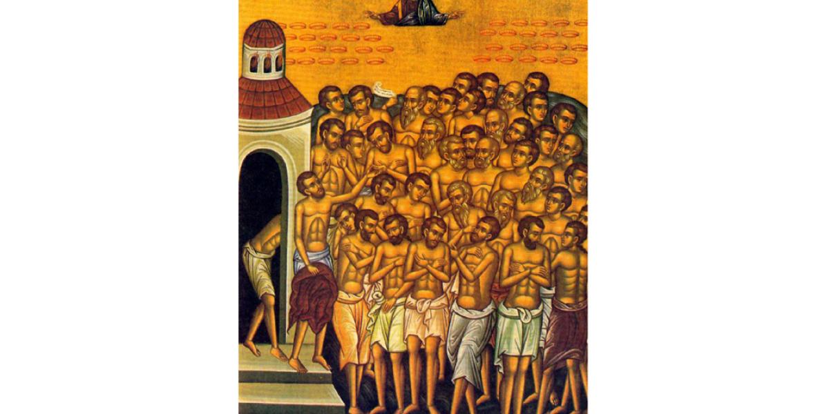 Sfinţii 40 de Mucenici au pătimit în Sevastia Armeniei, în vremea împăratului roman Liciniu (307-323 d.H.) şi a guvernatorului Agricola. Au fost soldaţi care au mărturisit că sunt creştini şi care au refuzat să jertfească idolilor. Cei 40 de mărturisitori au fost supuşi la multe chinuri, iar mai apoi au fost scufundati într-un lac aproape îngheţat, lângă cetate. În acea noapte de 8/9 martie a anului 320, cei 40 au biruit moartea, primind în chip văzut cununile muceniciei.