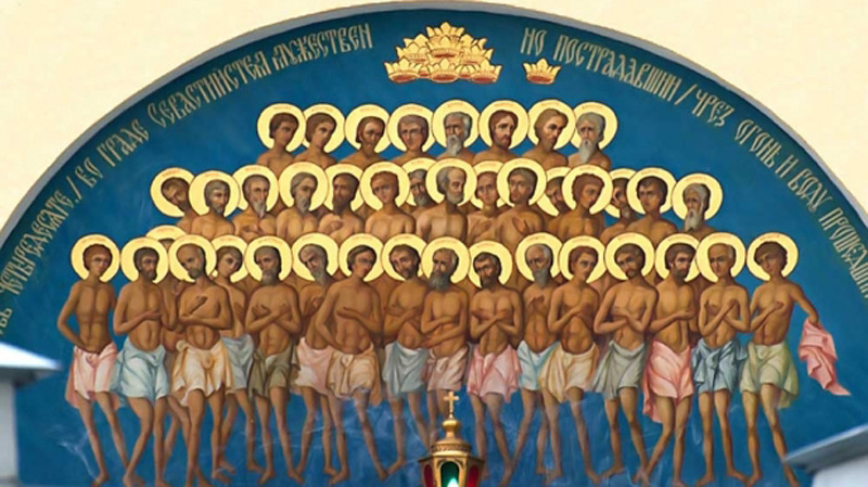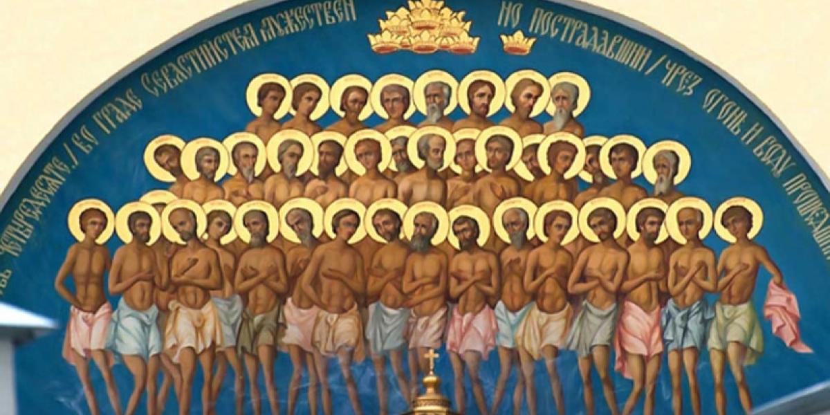 Sfinţii 40 de Mucenici au pătimit în Sevastia Armeniei, în vremea împăratului roman Liciniu (307-323 d.H.) şi a guvernatorului Agricola. Au fost soldaţi care au mărturisit că sunt creştini şi care au refuzat să jertfească idolilor. Cei 40 de mărturisitori au fost supuşi la multe chinuri, iar mai apoi au fost scufundati într-un lac aproape îngheţat, lângă cetate. În acea noapte de 8/9 martie a anului 320, cei 40 au biruit moartea, primind în chip văzut cununile muceniciei.