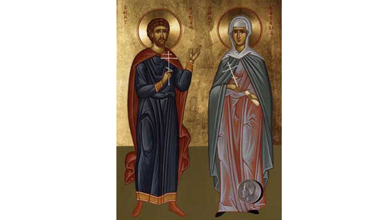 Sfinţii Mucenici Adrian şi Natalia (soţ şi soţie) au trăit în cetatea Nicomidiei, pe vremea împăratului păgân Maximian. Adrian, de 28 de ani, era păgân şi ocupa o funcţie importantă, aceea de pretor al Nicomidiei, iar Natalia, soţia sa, era creştină. În timpul persecuţiilor pornite împotriva urmaşilor Lui Hristos, văzând curajul a 23 de bărbaţi creştini, Adrian a ales să devină creştin. Când împăratul a auzit despre cele întâmplate, l-a întrebat: “Ţi-ai ieşit din minţi?!” La care pretorul i-a răspuns: “Nu, abia acum mi-am venit în fire şi le-am aflat!”