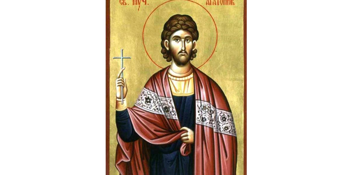 Sfântul Mucenic Agatonic, pe care-l sărbătorim astăzi, a fost cetăţean roman şi a trăit în cetatea Nicomidiei. Se ştie că Agatonic i-a convertit la creştinism pe mulţi păgâni. Din porunca împăratului păgân Maximian (284-305 d.H.), comisul Evtolmie a ajuns în Nicomidia, cu porunci clare: să-i extermine pe creştini. Aflând Evtolmie că însuşi principele Nicomidiei devenise creştin, a poruncit ca acesta să fie exilat în Tracia. La acea vreme, din pricina crudului Evtolmie au pierit mulţi creştini, iar dintre aceştia pomenim astăzi pe Zotic, Zinon, Teoprepie, Achindin şi Severian. Sfântul Agatonic a fost ucis în localitatea Silviria, împreună cu principele Nicomidiei şi cu mulţi alţi martiri creştini. Dar nu după multă vreme, păgânii au fost învinşi de Împăratul Constantin cel Mare, iar credinţa Domnului Iisus Hristos a cuprins tot Imperiul Roman.