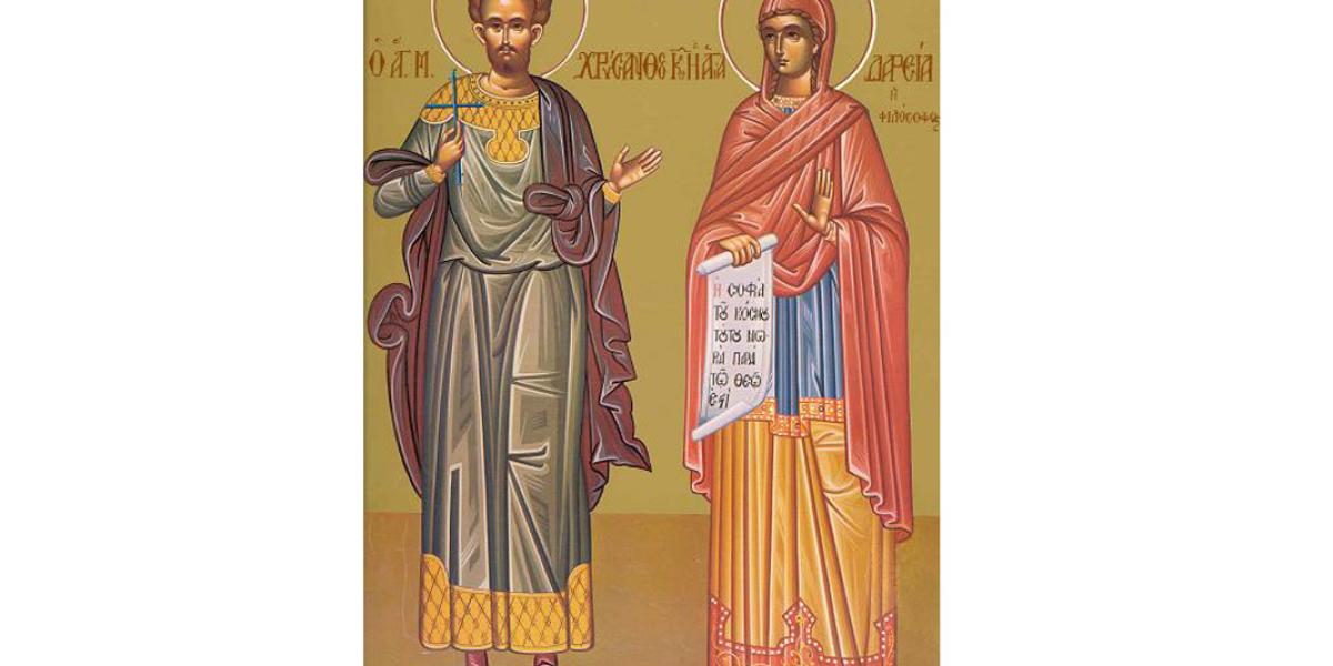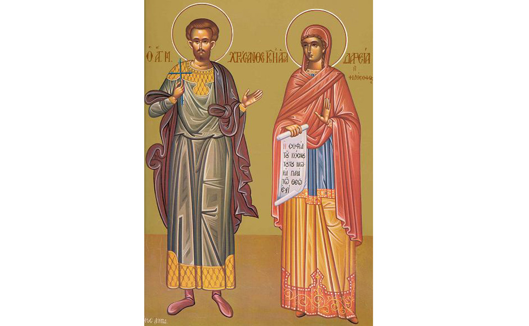 Sfântul Mucenic Hrisant a fost fiul lui Polemius, un distins patrician roman. A trăit în secolul al III-lea d.H. Se spune că, după ce a citit Faptele Apostolilor, Hrisant a ales să fie botezat în religia creştină. Închinător la zei, Polemius a făcut tot ce i-a stat în putere pentru ca Hrisant să lepede credinţa în Hristos. După nenumărate încercări, patricianul şi-a silit fiul să o ia în căsătorie pe Daria, o tânără de neam ales, sperând că va jertfi iarăşi zeilor. Plin de râvnă, Hrisant i-a aprins şi Dariei dorul după Hristos.