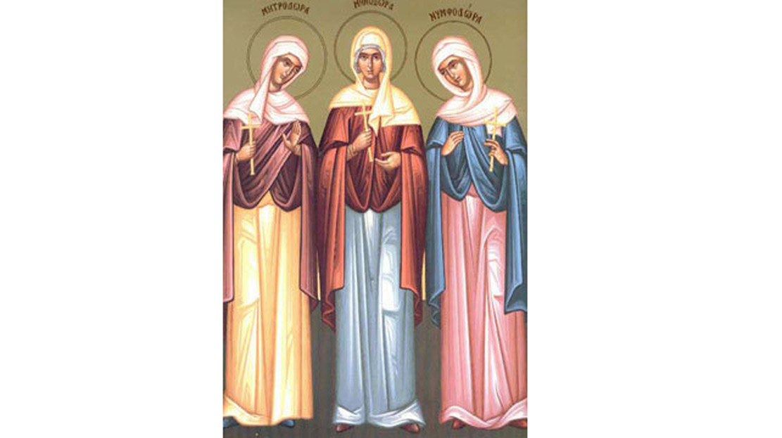 Sfintele Mucenite Minodora, Mitrodora si Nimfodora au trait in vremea imparatului Galeriu Maximian (305-311), in Bitinia. Aceste mucenitie au fost surori si s-au retras intr-o pustie pentru a se inchina deplin lui Hristos.
