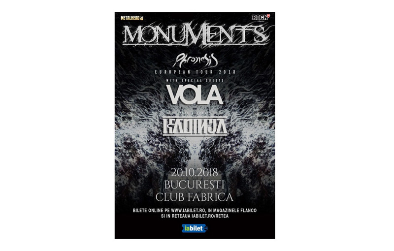 Un concert interesant pentru amatorii genului progressive metal va avea loc în luna octombrie în capitală. Este vorba despre trupele Monument din Marea Britanie şi Vola din Danemarca, care vor urca pe scena din Club Fabrica, sâmbătă, pe 20 octombrie. În deschiderea concertului va cânta trupa de progressive metal din Franţa, Kadinja. Potrivit unui comunicat de presă emis de organizatori, show-ul este unul exclusivist, cu doar 350 de bilete puse la vânzare.