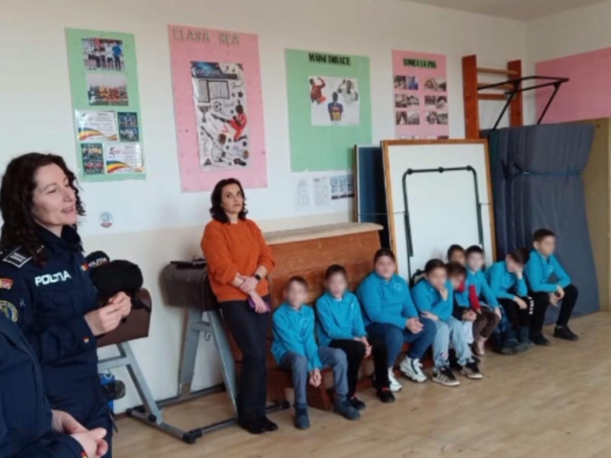 * polițiștii au purtat discuții cu elevii pentru prevenirea victimizării minorilor și situaţiilor periculoase în care ar putea fi implicaţi în mediul online, fenomenul de bullying și cyberbullying * s-a reliefat importanța de a semnala orice situație de conflict sau abuz, iar informațiile au fost prezentate într-o manieră adaptată vârstei elevilor, fiind încurajat dialogul și exprimarea opiniilor