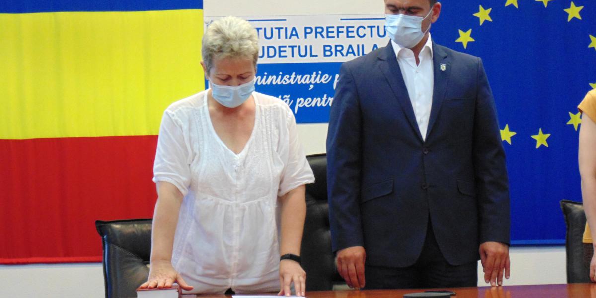 Ceremonie de învestire cu emoţii, ieri, pentru Simona Drăghincescu, care şi-a luat în primire fotoliul de subrefect al Brăilei, aproape izbucnind în lacrimi. Evenimentul a avut loc prin videoconferinţă, în prezenţa secretarului de stat al Ministerului Afacerilor Interne, Gheorghe Sorescu şi a directorului general al Direcţiei Generale pentru Relaţiile cu Insituţiile Prefectului, Teodor Iulian Gheorghe. Hotărârea Guvernului României privind “exercitarea, cu caracter temporar, în condiţiile legii, a funcţiei publice de subprefect al judeţului Brăila de către doamna Simona Drăghincescu” a fost publicată în Monitorul Oficial, luni, 3 august 2020, nr. 692, Partea I, Legi, Decrete Hotărâri şi alte acte.