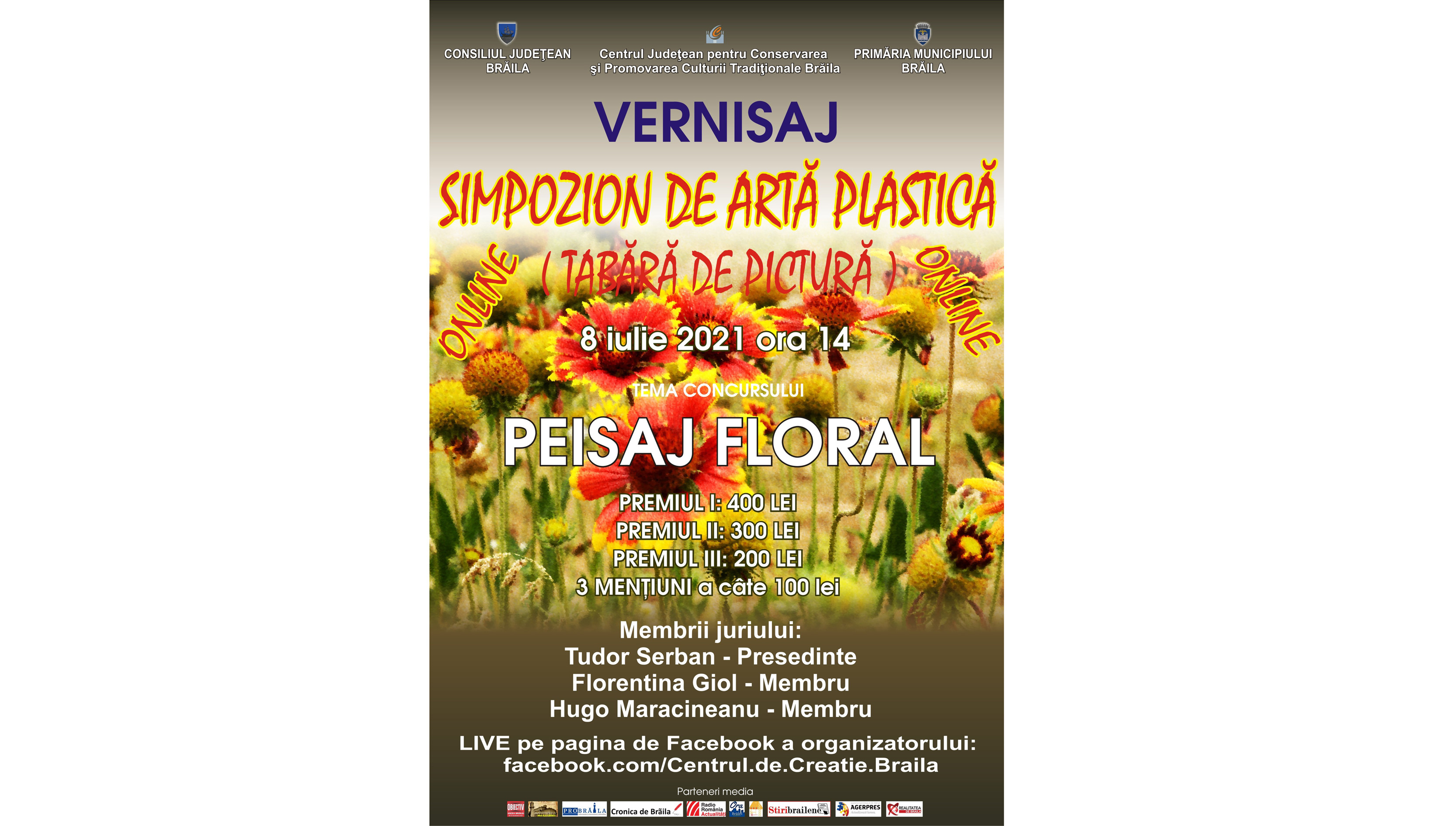 * astăzi, de la ora 14.00, are loc vernisajul Simpozionului de Artă Plastică (Tabăra de Pictură), ediția 2021, organizat de Centrul Județean pentru Conservarea și Promovarea Culturii Tradiționale Brăila * evenimentul se desfășoară în Sala ProArte a Centrului de Creație