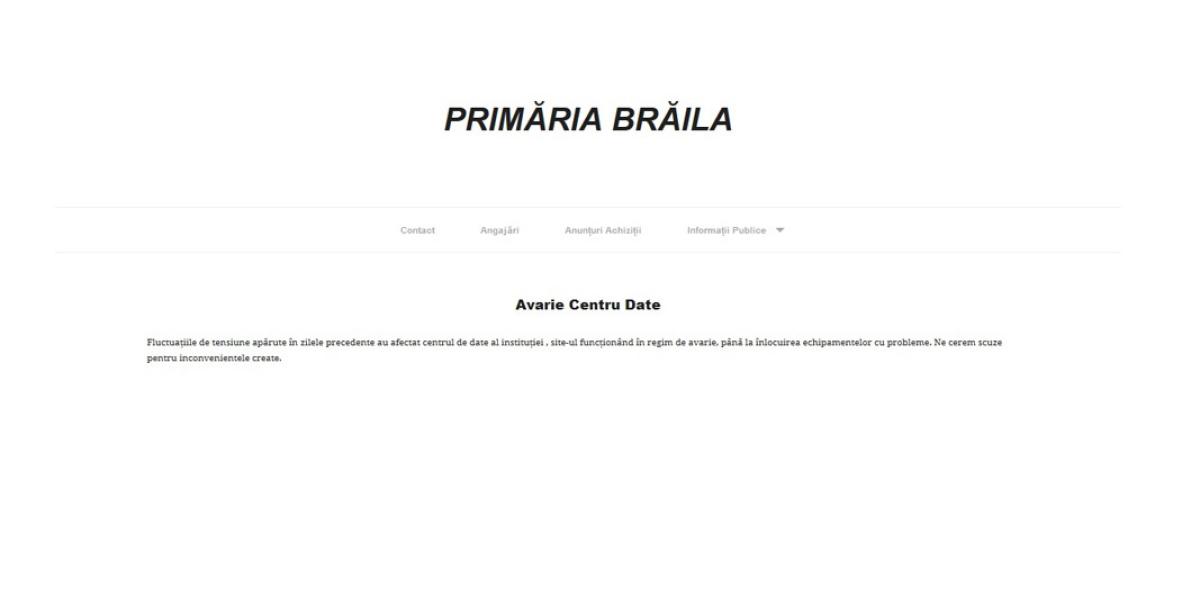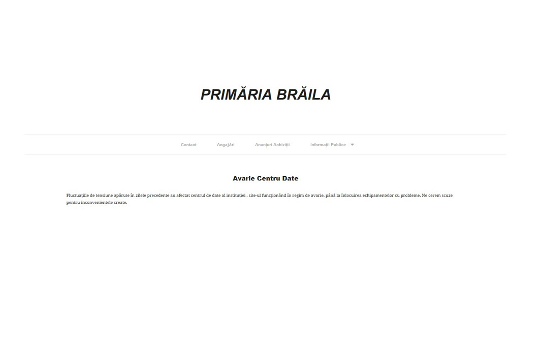• de câteva zile, brăilenii care au încercat să acceseze site-ul Primăriei au descoperit că pagina este offline • începând de ieri, site-ul funcţionează, dar în regim de avarie, într-o variantă rudimentară • potrivit viceprimarului Alexandru Jantea, problema a apărut după ce serverele s-au ars, ca urmare a fluctuaţiilor din reţea