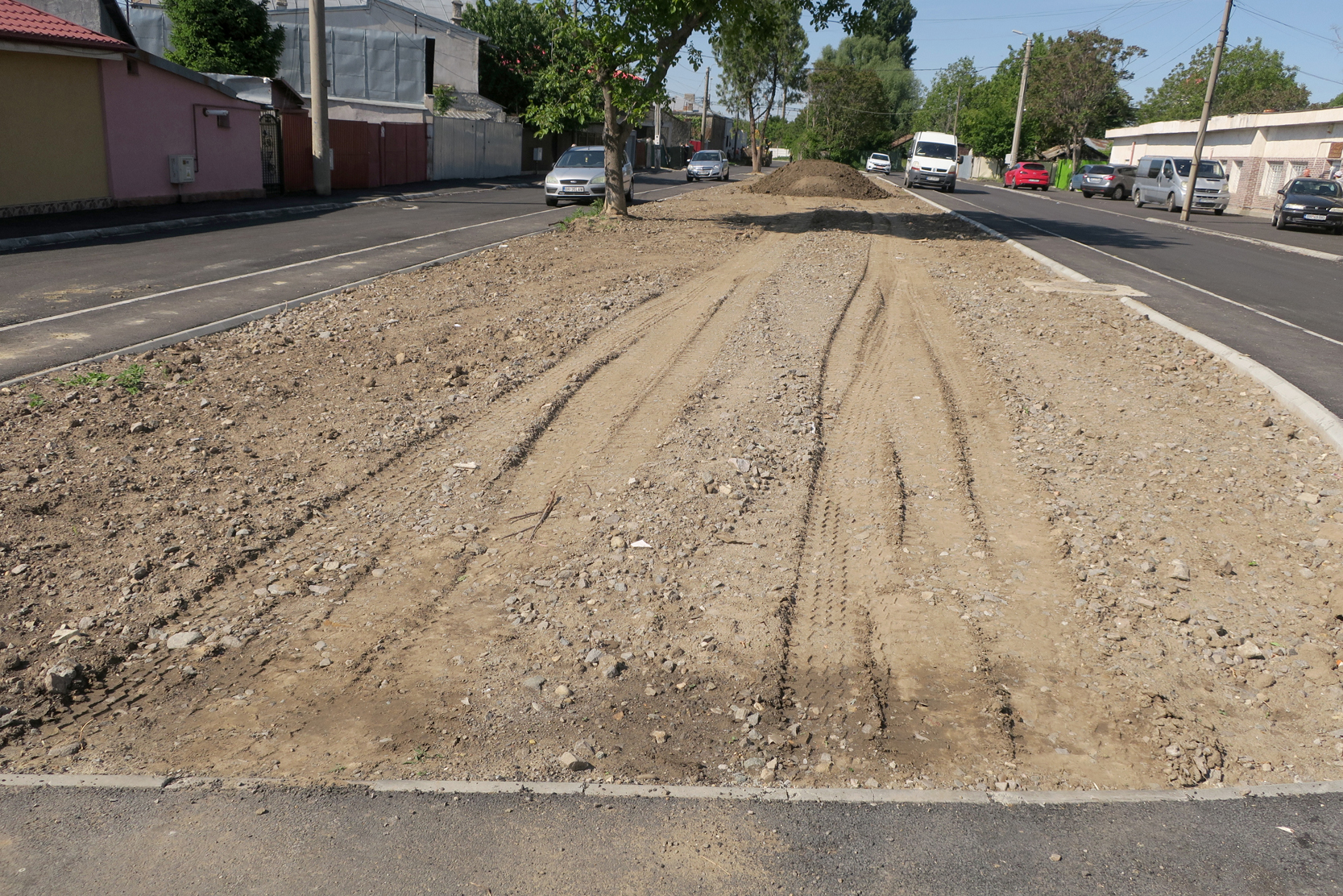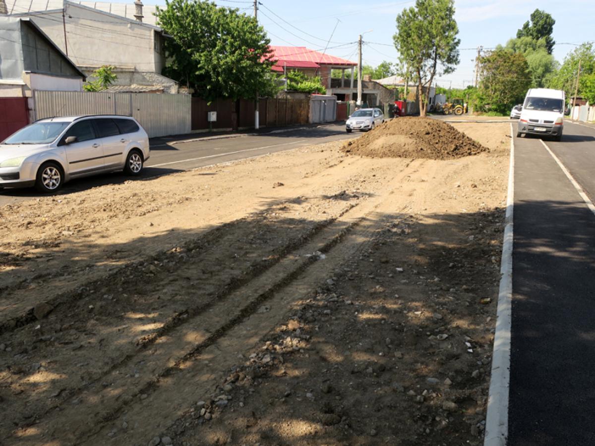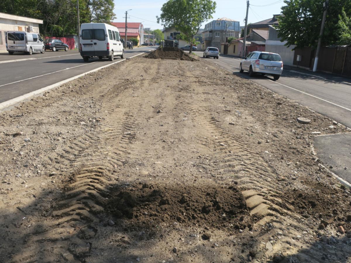 • proiectul de modernizare a acestei străzi din municipiu a presupus nu doar asfaltarea carosabilului și trotuarelor ci și transformarea în spațiu verde a unui loc care fusese în prealabil ocupat de garaje • ieri, constructorul care s-a ocupat de modernizarea străzii a adus pământ fertil, cu intenția de a-l împrăștia pe zona destinată pentru spațiu verde, fără a curăța, însă, resturile de moloz și pietre rămase de la demolarea fundațiilor fostelor garaje • reprezentanții administrației locale au precizat că dacă lucrarea nu va fi executată corespunzător nu va fi acceptată la plată