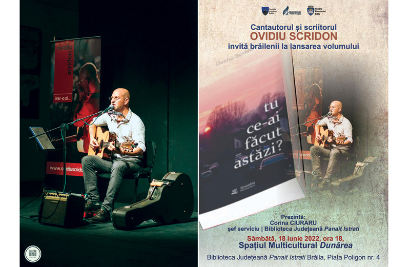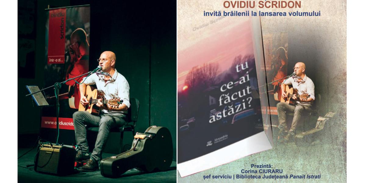 * pe 18 iunie, brăilenii sunt invitați la un spectacol de muzică folk și poezie * în cadrul evenimentului, Ovidiu Scridon își va lansa volumul de poezii "Tu ce-ai făcut astăzi?"