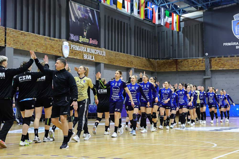 • HC Dunărea Brăila – CSM București, 34-36 • s-a jucat ca în cupele europene • MVP-ul partidei a fost Valeriia Kirdiasheva, cu 11 goluri marcate, dar punctele au plecat la București