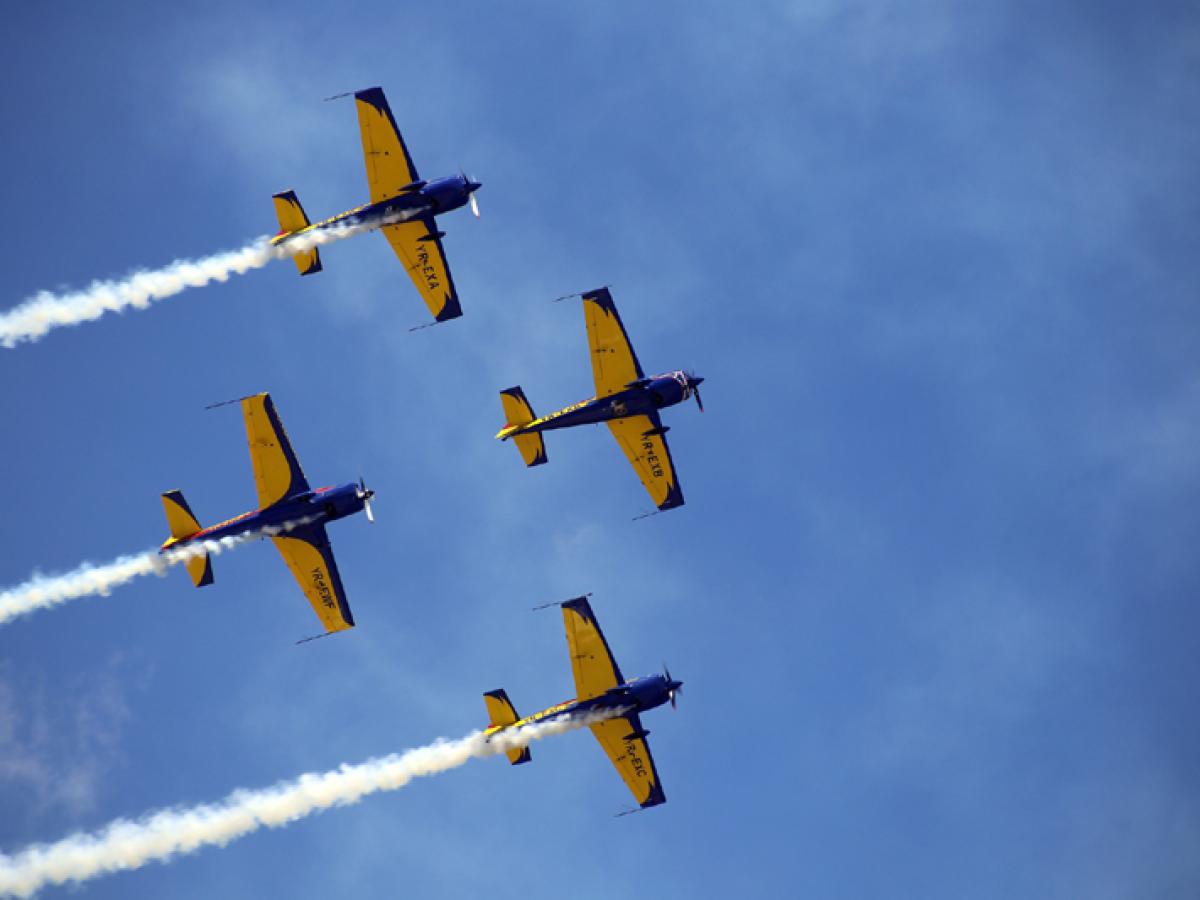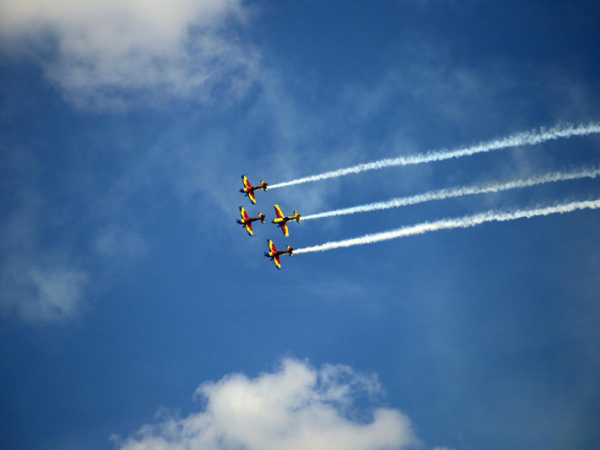 Vremea rea le-a încurcat planurile organizatorilor, obligându-i să amâne pentru duminică, 18 mai, mitingul aerian ”Ianca Airshow” care fusese programat inițial pentru sâmbătă, 17 mai, în fostul Aerodrom Militar aflat acum în administrarea Aeroclubului României. Dar, așa cum, după ploaia și frigul de sâmbătă, primăvara a revenit în forță duminică, cu soare și temperaturi numai bune de ieșit din casă, așii în pilotaj care au evoluat pe cerul Iancăi au făcut să merite din plin prezența la acest spectacol aviatic, pentru sutele de spectatori care s-au deplasat până acolo. Ca de fiecare dată, cei cinci membri ai formației de acrobație aeriană ”Șoimii României”, sau ”The Hawks of Romania”, așa cum s-au făcut cunoscuți la numeroasele concursuri sau demonstrații din străinătate, și-au respectat blazonul și i-au ținut cu sufletul la gură pe cei din public, cu evoluții, în formație sau solo, perfect sincronizate și pline de adrenalină. Lupinguri amețitoare, ranversări, pendulări, toate perfect executate, la viteze fulgerătoare sau temperate până la limita portanței, făcând față unor forțe G năucitoare pentru persoanele neantrenate, cei cinci piloți din componența ”Șoimilor României” au smuls ropote de aplauze binemeritate de la cei care îi priveau de la sol. Vopsite în culorile naționale - roșu, galben și albastru -, avioanele de înaltă acrobație Extra 330, fabricate în Germania, cu motoare de 360 CP, dau tot ce pot mai bun cu acești ași la manșă. Este vorba despre George Rotaru, capul formației și director al Aeroclubului României; Laszlo Terencz, aripă dreapta; Valentin Caval, aripă stânga; Teodor Munteanu, coadă, și mezina formației, Andreea Bănesaru, aripă dreapta, capabilă de evoluții solo care îi fac invidioși și pe piloții cu zeci de ani vechime.