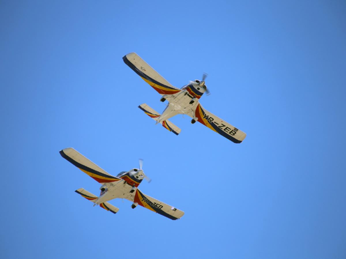Și ”The Pelicans” (”Pelicanii”), cealaltă formație reprezentativă a Aeroclubului României i-au încântat pe spectatori cu zboruri în formație, perfect sincronizate. De la ”The Pelicans” au evoluat, duminică, la Ianca, Mădălin Gîrbea, cap formație, și Mircea Olteanu. Aceștia pilotează avioane ultraușoare CP Savannah, ale căror componente produse în Italia sunt asamblate la Aeroclubul României. Sunt avioane cu doar 100 CP destinate mai mult cursurilor de aviație, dar, cu piloți experimentați și talentați la manșă, pot face spectacol pe cer, fapt dovedit cu prisosință în timpul mitingului aerian de duminică.