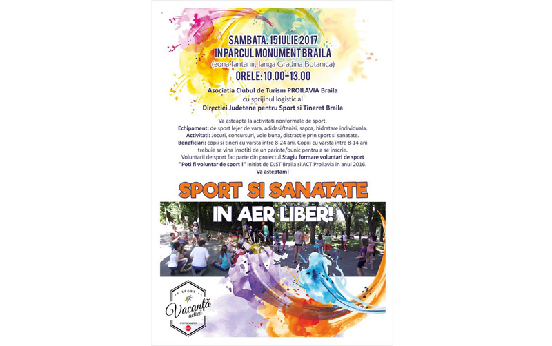 cu sprijinul logistic al Direcţiei Judeţene pentru Sport şi Tineret Brăila îi invită pe copii la diverse activităţi nonformale, jocuri, concursuri, voie bună şi distracţie prin sport şi sănătate.