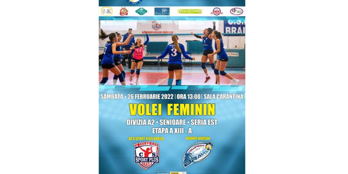 Sport Plus Brăila va juca sâmbătă, 26 februarie, în sala CSM Brăila, cu Bravol Brașov. Și pentru că formația brașoveană și-a propus să vină la Brăila chiar în ziua meciului, clubul brăilean de volei a acceptat ca partida să înceapă la ora 13.00.