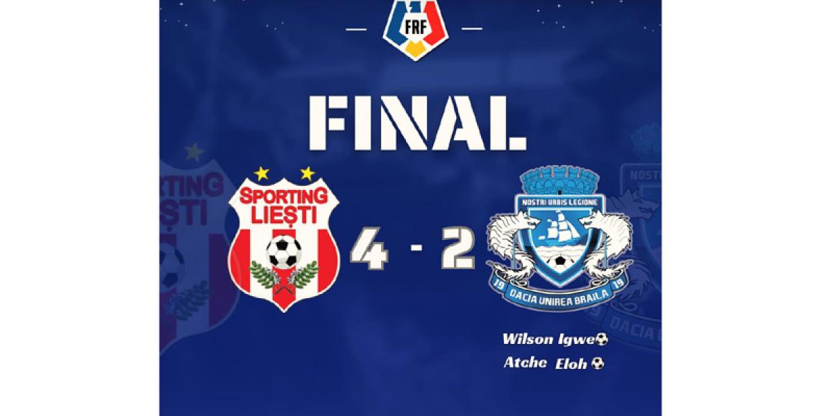 Viorel Costea, de două ori, Băluță și Maftei au înscris pentru Sporting Liești. Dacia Unirea a marcat în minutul 25, prin Eloh, golul de 1-1. La scorul de 4-1 pentru echipa gazdă, Dacia Unirea a mai înscris o dată prin Igwe, dar partida era deja jucată.