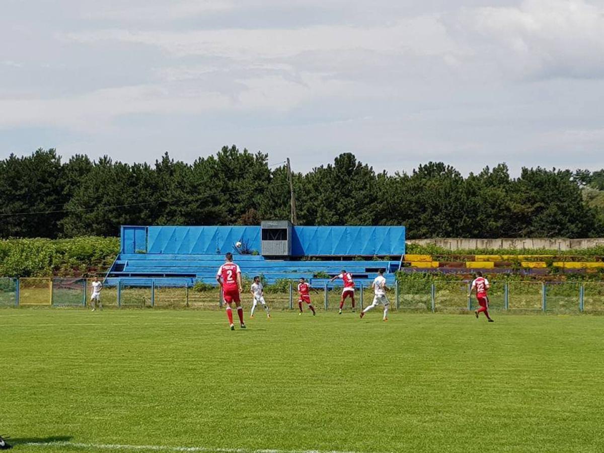 Echipa din Chiscani a avut prima ocazie în minutul 12 prin Marius Coman care a șutat de la 25 de metri dar portarul gazdelor a fost la post. Cinci minute mai târziu, oaspeții au beneficiat de un corner, Moldoveanu a centrat pe colțul lung, Pârlog a recentrat în fața porții, dar șutul lui Coman de la marginea careului mic a fost blocat de un apărător al gazdelor. Tot Moldoveanu a centrat de la colțul terenului în minutul 20 dar Bogdan Dumitru a trimis mingea pe lângă poartă. Până la pauză fiecare combatantă a avut câte o șansă de gol, portarul Daniel Popescu (min. 45) și-a salvat echipa de la primirea unui gol la șutul lui Mihalache, iar la ultima fază a primei reprize portarul gazdelor a avut o paradă frumoasă la șutul lui Mădălin Pascu.