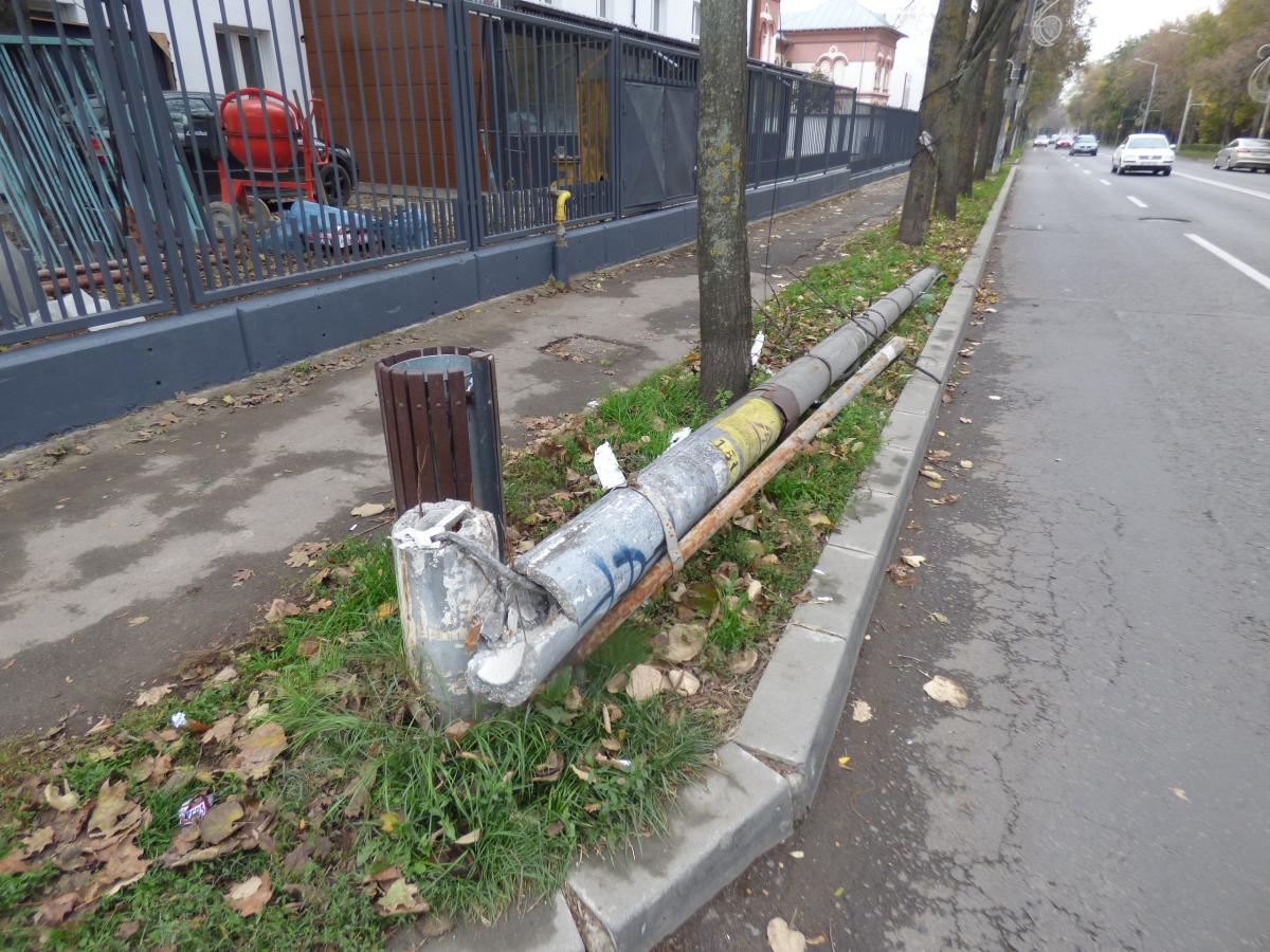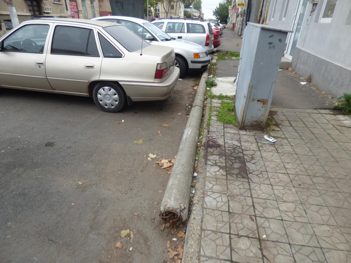 * sunt numeroşi astfel de stâlpi prin tot oraşul, care zac pe trotuare sau lângă borduri, fără să se atingă nimeni de ei, în afară de hoţii de fier vechi, care profită de situaţie pentru a fura componente metalice