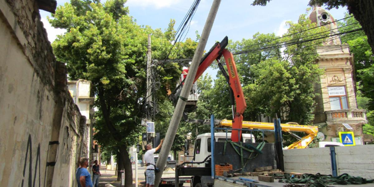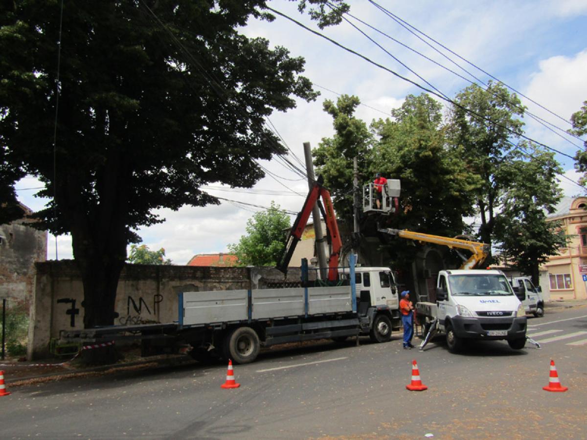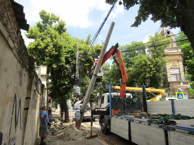 • totul din cauza unui incident înregistrat în trafic, miercuri seară, când autobuzul a evitat în extremis o coliziune cu un autoturism • stâlpii au fost înlocuiți joi, operațiunea perturbând câteva ore circulația pe Calea Galați și, parțial, pe Calea Călărașilor