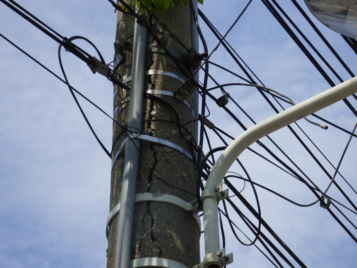 • vechi de zeci de ani şi supraîncărcaţi cu o reţea tot mai mare de cabluri, mulţi stâlpi de beton sunt brăzdaţi de crăpături adânci şi ar putea ceda în orice moment • Primăria spune că o să facă un inventar şi abia după aceea va lua măsuri