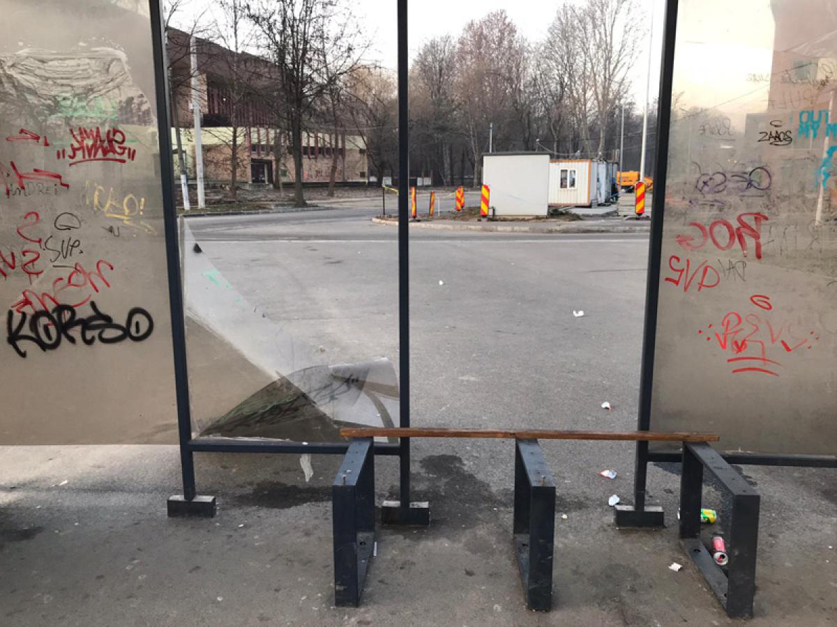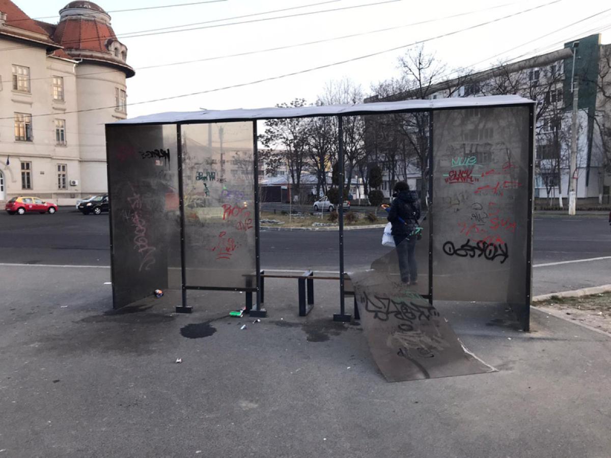 De furia huliganilor nu a scăpat nici băncuţa din cadrul staţiei care a fost distrusă în totalitate, rămânând doar scheletul din metal astfel încât persoanele în vârstă sau cu probleme sunt nevoite să aştepte în picioare.