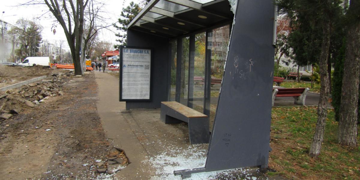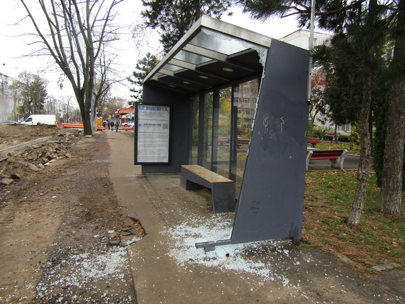 Nu este de ajuns că refugiul stației de tramvai de la Călărași/Mihai Bravu a fost de “n” ori acroșat și distrus de vitezomani și șoferi neatenți în trafic (cum s-a întâmplat acum câteva zile, iar altădată și cu refugiul Călărași/Griviței). În această perioadă a căzut victimă și stația de pe Calea Galați/Griviței. Nefolosită din cauza lucrărilor la linia de tramvai, unul din geamurile laterale tip securit (foarte scump) al stației a fost spart în mii de bucățele de sticlă. Bănuiala, nedovedită deocamdată, cade pe găștile care se adună noaptea în respectiva stație, după cum ne declara un pensionar din zonă, luat în derâdere de un șmecher cu “fugi, bre, de aici! A bătut vântul sau a intrat un excavator în el”. No comment!