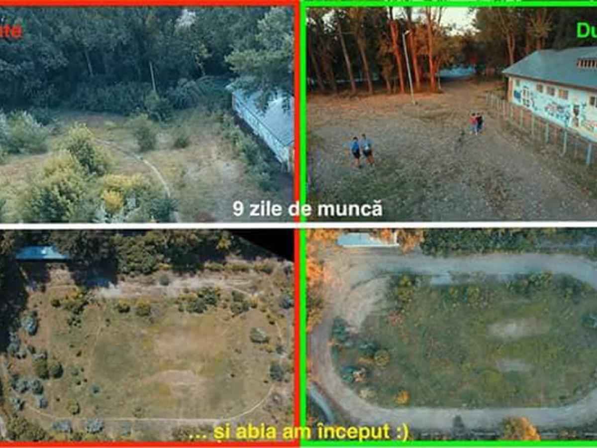 Abandonat de autorităţi de la mijlocul anilor '90, Stadionul de Atletism din Parcul Monument era, până în urmă cu câteva săptămâni, invadat de vegetaţie într-o asemenea măsură încât nu mai puteai pătrunde în incinta lui decât cu ajutorul unei macete. Exact ca într-o junglă! Situaţia s-a schimbat abia după ce un grup de voluntari a trudit şase week-end-uri la rând pentru a îndepărta o parte dintre tufişurile, bălăriile şi copacii crescuţi care prinseseră rădăcini peste tot locul. Acţiunea de ecologizare a început pe 8 iulie, la iniţiativa fostei Asociaţii “Brăila 2021”, cea care s-a ocupat de promovarea oraşului nostru în competiţia pentru desemnarea viitoarei capitale europene a culturii. În prezent, asociaţia respectivă trece printr-un proces de transformare, urmând să se numească Asociaţia Brăileană pentru Educaţie Civică. Membrii săi încearcă în continuare să pună în practică diverse proiecte pentru ridicarea nivelului comunităţii brăilene, din punct de vedere cultural, sportiv, social şi economic. Scoaterea la lumină a Stadionului de Atletism, din jungla care îl acaparase complet, a reprezentat un astfel de proiect, în care s-au implicat în total circa 70 de voluntari, de toate vârstele, de la copii de şcoală generală până la pensionari. Aceştia au muncit mai multe sâmbete şi duminici, care cu lopata, care cu drujba sau cu ce a putut fiecare. Adunat, s-a lucrat timp de zece zile, iar când munca manuală nu a fost suficientă, s-a apelat la un utilaj închiriat contra sumei de 2.500 lei, bani strânşi în urma unei chete făcute pe reţelele de socializare. Cu ajutorul acestuia, s-a curăţat practic vechea pistă de atletism de copacii şi tufişurile ce prinseseră rădăcini adânci.