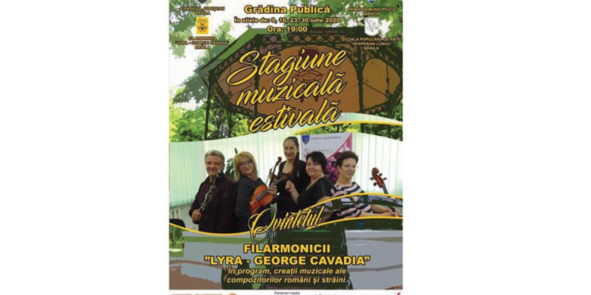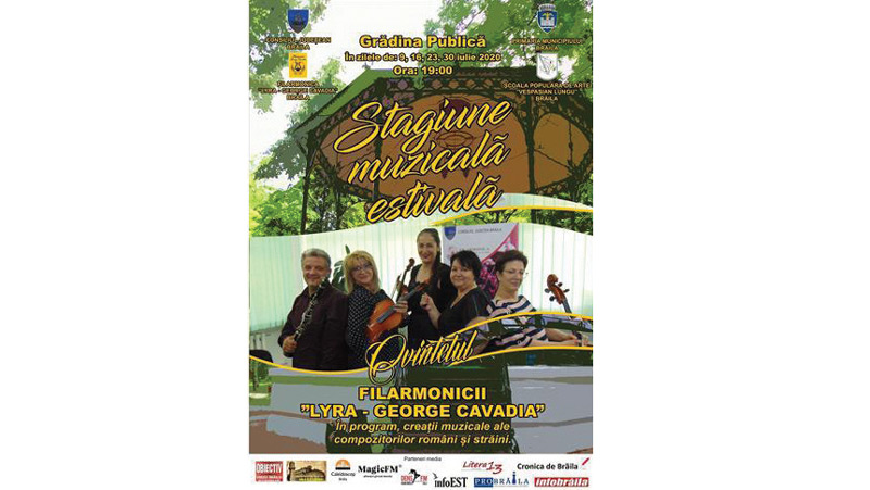 Vineri, 31 iulie 2020, de la ora 19.00, Cvintetul Filarmonicii “Lyra-George Cavadia” din Brăila îşi începe recitalul instrumental în Parcul Grădina Publică, în acordurile nemuritorului vals Valurile Dunării, al compzitorului IOSIF IVANOVICI.