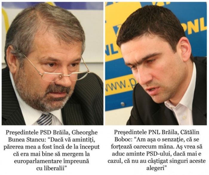 Apariţia unui nou scandal la nivel naţional în interiorul USL-ului nu pare să fie pe placul preşedintelui PSD Brăila, Gheorghe Bunea Stancu. Potrivit acestuia, apariţia alianţei electorale Uniunea Social Democrată, dintre PSD, PC şi UNPR ar fi o parte importantă a problemelor actuale cu liberalii. "Dacă vă amintiţi, părerea mea a fost încă de la început că era mai bine să mergem la europarlamentare împreună cu liberalii. USL era cea mai bună variantă. Noi am deschis cutia Pandorei acum, nu cei de la Brăila, ci cei care ne conduc şi e un adevărat scandal naţional. Se trage din toate părţile, acum se trage şi de la PNL în noi. Nu ştiu dacă e cea mai bună soluţie astăzi. Nu ştiu dacă această alianţă Uniunea Social Democrată este cea mai bună, dar dacă şefii noştri care sunt cu siguranţă aleşi cu mai multe voturi decât noi, sunt cei care au ales această cale, noi nu avem decât să o urmăm. Până când? Vom vedea", a declarat Stancu. De cealaltă parte, copreşedintele USL Brăila, liderul liberalilor la nivel local, Cătălin Boboc, pare să fie de altă părere. Acesta a subliniat că nu USD-ul este factorul deranjant, ci atitudinea PSD-iştilor. "Am spus de fiecare dată, PNL-ul în USL este un partid egal. Nu suntem nici mai puţin importanţi, nici mai importanţi decât PSD-ul. Motiv pentru care, atunci când în interior se decide că anumiţi miniştri va trebui schimbaţi şi va trebui susţinuţi alţii, mergem, evident şi cu acordul premierului, şi facem propuneri. În momentul în care noi venim cu astfel de propuneri, din păcate, partidul ăsta tot încearcă să ne spună ce mare, ce deştept şi şmecher este el. De la o chestiune care putea fi simplă, s-a ajuns la o întreagă discuţie şi dezbateri. Am aşa o senzaţie, că se forţează oarecum mâna. Aş vrea să aduc aminte PSD-ului, dacă mai e cazul, că nu au câştigat singuri aceste alegeri. (...) Pe noi nu ne-a deranjat USD-ul, şi-au asumat chestiunea asta. Aşa au decis, poate că e în regulă aşa. Dar atitudinea asta de pus condiţii, nu e în regulă", a afirmat liberalul.