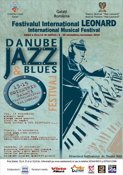 Teatrul Muzical "Nae Leonard" din Galaţi găzduieşte începând din această seară cea de a XI-a ediţie a Festivalului Internaţional "Leonard". Manifestarea atrage în oraşul vecin artişti şi grupuri, nume importante ale vieţii muzicale internaţionale. În spiritul tradiţiei repertoriale a teatrului, reprezentaţiile acoperă toate genurile spectacolului muzical, de la operă şi operetă sau concert simfonic, până la spectacol de divertisment. Ediţia din acest an promovează pentru prima oară într-un mod de amploare jazz-ul şi blues-ul, prin organizarea primei ediţii a Festivalului Internaţional "Jazz & Blues la Dunăre" ("Danube Jazz & Blues Festival"). Astfel se revine la tradiţia marilor festivaluri în oraşul de pe malul stâng al Dunării. Potrivit organizatorilor, evenimentul cuprinde trei zile electrizante de muzică şi libertate, în care publicul va fi convins încă odată de rafinamentul şi vitalitatea acestui gen muzical. Pe scena Teatrului Muzical Nae Leonard vor urca trupe şi artişti din America, Germania, Croaţia, Austria, Bulgaria şi România, confirmând şi subliniind importanţa celui mai important eveniment muzical din oraşul Galaţi.