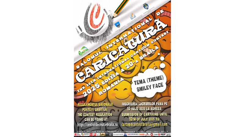 Salonul Internațional de Caricatură reprezintă unul dintre cele mai importante evenimente din domeniul caricaturii și marchează continuitatea în contemporaneitate a conceptului de schiță/desen satiric aflat între tradiție și inovație, plecând de la tema dată și trecând prin diferite formule de percepție și de prezentare personală, cu o atenție deosebită acordată coloristicii, formelor și simbolurilor. Concursul se adresează caricaturiştilor amatori sau profesionişti, iar tema ediției XX este „Față zâmbitoare” (Smiley Face). Lucrările (maxim 3), în format digital, vor fi trimise până la data de 10 iulie 2025, la adresa de email cartooncontestbraila@gmail.com și vor fi însoțite de o scurtă prezentare a activităţii artistice a autorului.