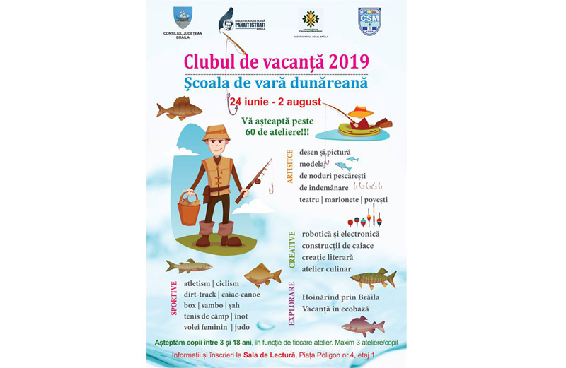 Ca în fiecare an, Biblioteca Judeţeană organizează şi în 2019 Clubul de vacanţă, cel mai mare eveniment dedicat copiilor brăileni în sezonul estival. Este vorba de peste 65 ateliere, pentru toate gusturile, începând cu cele sportive şi de tururi ghidate, până la cele de limbi străine, îndemânare, handmade şi artistice.