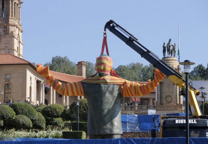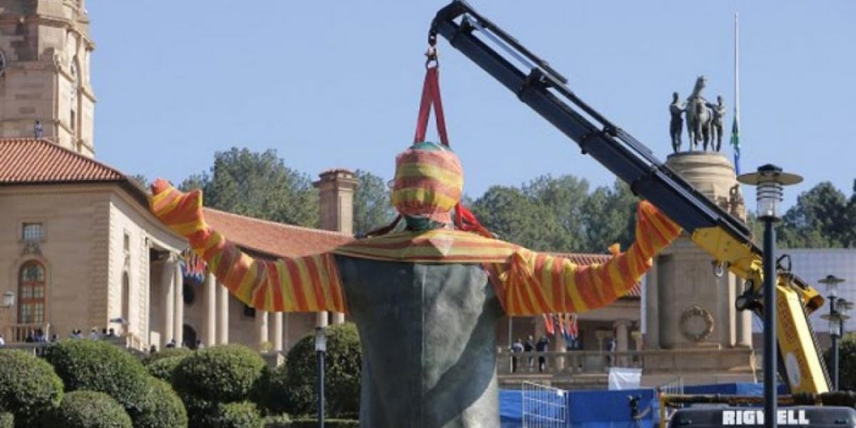 Poziţia o evocă pe cea a lui Christos Mântuitorul din Rio de Janeiro, menţionează mai mulţi utillizatori de Internet pe Twitter. Ea înlocuieşte o altă statuie, cea a lui Barry Hertzog, fondatorul Partidului Naţional care a instituit apartheidul.