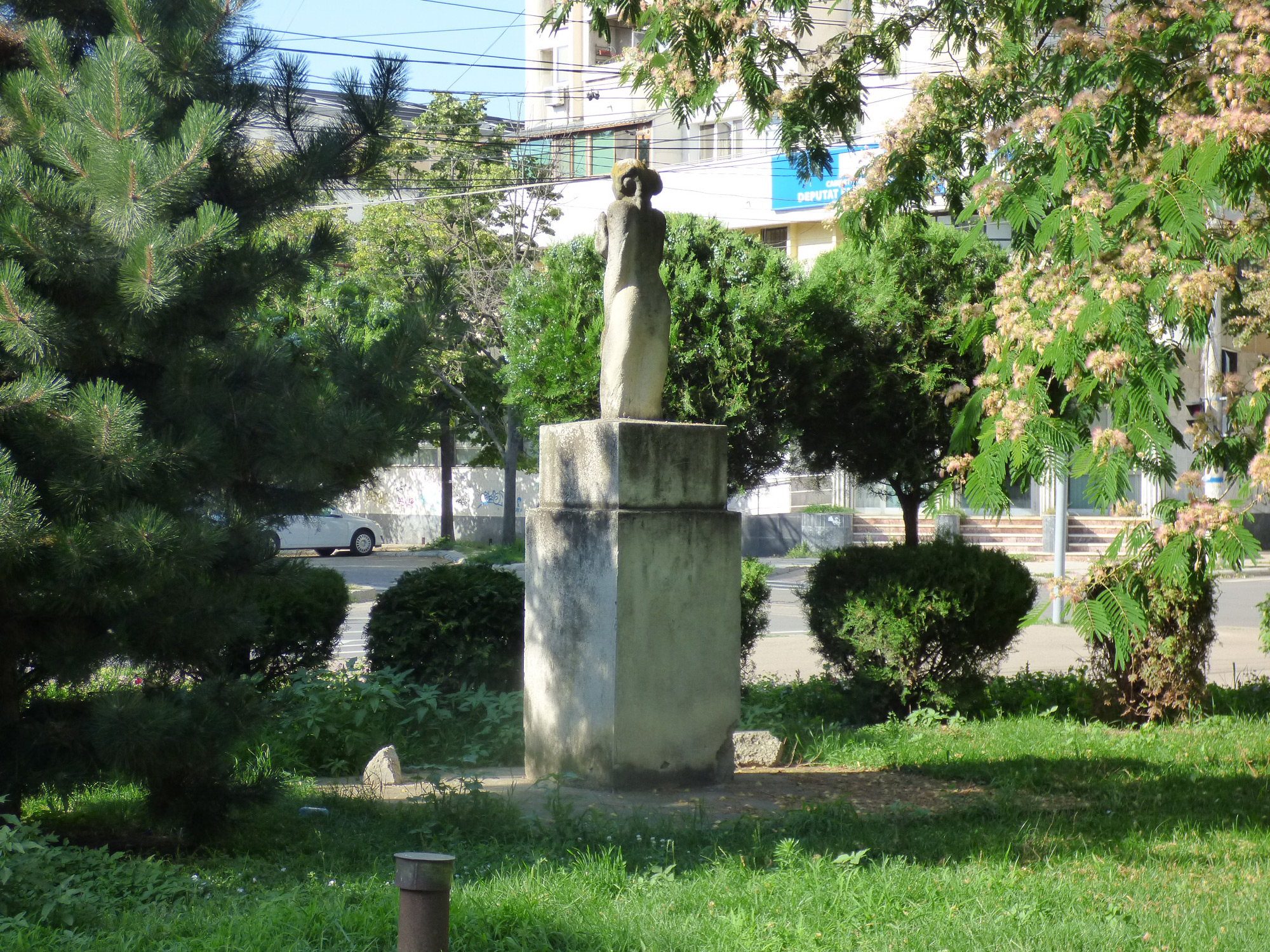 Cel mai deranjant aspect este cel al statuii lui I.C.Frimu, de lângă fostul Club “Progresul”(pe cine să mai reprezinte Frimu, când s-a terminat cu clasa muncitoare!); şi cea de la intersecţia Independenţei cu Şcolilor – ambele statui fiind total obturate de vegetaţia şi arbuştii, copacii din jurul lor. Culmea este că respectivele statui pot fi descoperite doar ocolind vegetaţia (ca într-un concurs de orientare turistică), pentru a le vedea numai …spatele. Aşa e când nu ne asumăm istoria, cu bune şi rele, şi când, pentru imagine, s-a găsit “formula” plantării de arbuşti, acum vreo 10 ani, lângă statuia de la Şcolilor. O istorie repetată, cu gafa celor doi brazi, care din anii '60 au ajuns să depăşească serios înălţimea ceasului din Piaţa Traian – luându-i acestuia din ţinuta sa zveltă şi impunătoare.