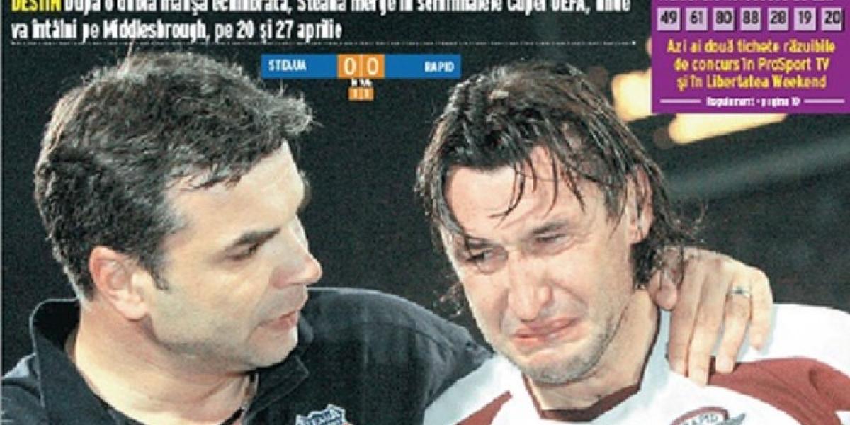 Colegul său de echipă, Sorin Ghionea, este convins că tragerea la sorţi pentru sfertul de finală al Cupei UEFA de acum 10 ani a fost aranjată, pentru a nu ajunge două echipe româneşti în semifinale. „S-au încălzit bilele. Ce să aducem noi, două echipe româneşti ,în semifinalele Cupei UEFA? Mi-aş dori ca şi acum să mai existe acea rivalitate dintre noi şi Rapid, dar din păcate mai e nevoie şi de calitate. Atunci, ţin minte că a contat pentru noi foarte mult că Rapid se calificase în sferturi şi noi ne doream acelaşi lucru", a spus Ghionea.