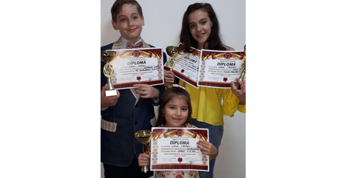 Soliştii grupului “Steluţe dunărene”, coordonaţi de profesor Liliana Toader, au participat la cea de a Vll-a ediţie a Festivalului naţional “Glasul Copiilor”, manifestare care s-a desfăşurat la Bucureşti. Deşi Marele Trofeu a rămas la Bucureşti, fiind câştigat de grupul DUO LIPS, de la clasa profesorului Mihai Şirlincan, brăilenii au reuşit să obţină patru trofee la categoriile de vârstă la care au concurat. Astfel, la secţiunea DEBUT, Maria Lacurezeanu a câştigat Trofeul, iar Clara Ştefan a obţinut Premiul l. Tot la Debut, Diana Muşat a obţinut Premiul l, la categoria 9-12 ani. La categoria 5-6 ani, Nira Guedenon a obţinut Premiul l, iar Dalia Coman, Premiul al ll-lea. La categoria 7-8 ani, Ruxandra Rădulescu a obţinut Premiul al lll-lea, iar Cezar Dorobanţu a obţinut Trofeul la categoria 9-10 ani. Trofeul categoriei POP INTERNAŢIONAL a fost câştigat de Valentina Enea, care a câştigat şi Trofeul secţiunii ETNO.