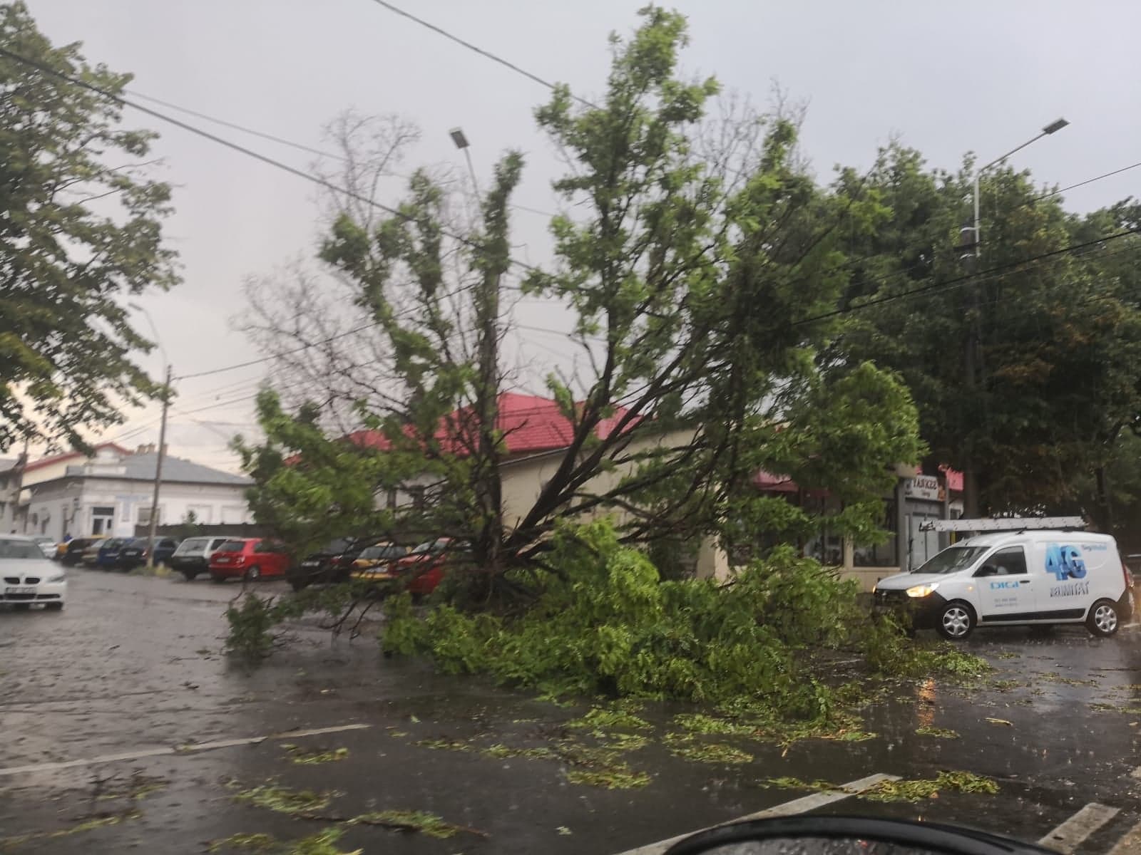 De asemenea, vântul puternic a doborât copaci, pe străzi precum Griviței sau Călugăreni, precum și pe bulevardul Cuza. Intervin pentru deblocarea carosabilului atât echipaje ale ISU cât și echipe de lucru ale Seroplant. Vom reveni.