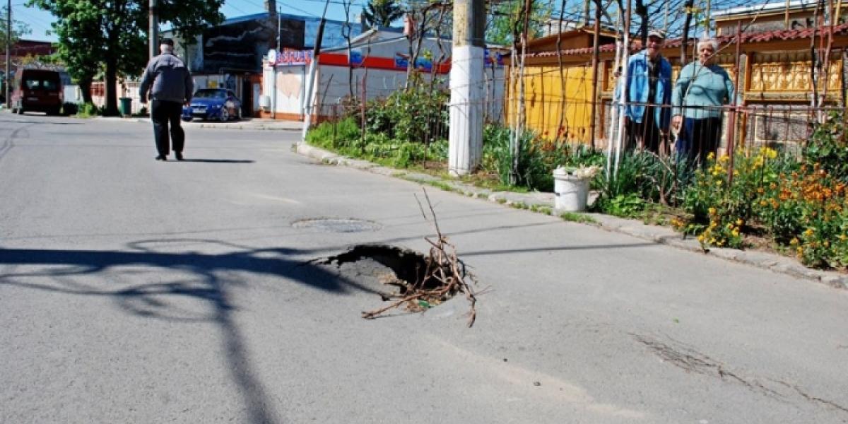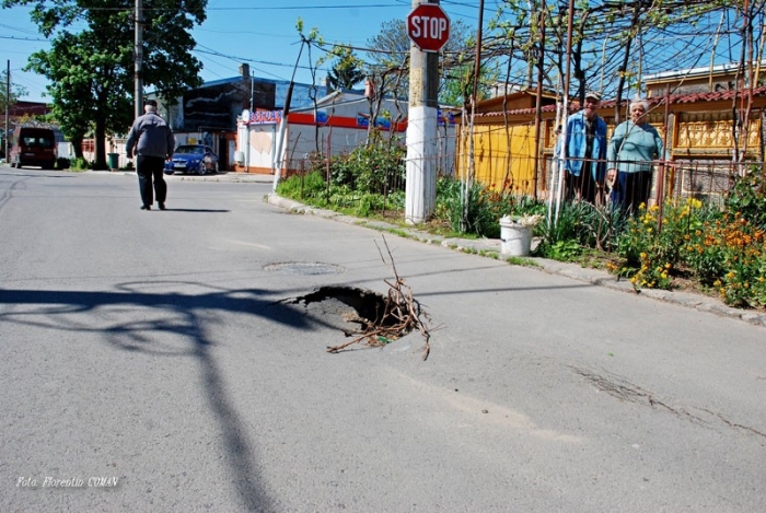 Problemele lăsate în urmă de echipele de lucru care au îngropat conductele de apă şi canalizare pe strada Mihai Bravu încep să iasă la iveală. De fapt, dacă e să respectăm realitatea din teren, putem spune că încep să atârne atât de greu, încât trag strada în jos. Concret, pe carosabilul străzii Mihai Bravu, în apropiere de intersecţia cu Str. Apollo, a apărut cu câteva săptămâni în urmă o ditamai groapa, după ce asfaltul s-a surpat sub roţile unei autogunoiere. Faptul că micul crater s-a ivit chiar lângă un capac de cămin, dă de înţeles că, de fapt, terenul se surpă pe traseul conductelor subterane. Ipoteza este susţinută şi de locatarii străzii, care spun că pe locul unde a apărut groapa a fost săpat, cu nici doi an în urmă, un şanţ pentru îngroparea conductei de canalizare. "Au stat cu şanţul ăla destupat până când i-a prins toamna. Abia prin noiembrie 2014 au început să pună pământul la loc şi îl puneau amestecat cu zăpadă. De-aia se surpă acum", ne-a spus proprietara unei case din zonă. Un alt brăilean, Ion Maloş, care locuieşte în imobilul de la nr. 405, Str. Mihai Bravu, chiar în dreptul surpăturii, ne-a povestit că aceasta a apărut în urmă cu circa două săptămâni. "Maşina salubrităţii a oprit aici şi, cât au stat băieţii să adune sacii de gunoi de pe stradă, la un moment dat unul dintre ei a început să strige la şofer să pornească, fiindcă i se scufundă o roată. Abia a reuşit să iasă din groapa asta... De atunci, aşa a rămas aici, n-a venit nimeni să astupe. Mai punem noi câte o creangă, ca să semnalizăm, dar unii şoferi nu o observă şi intră în plin. Unul a venit de pe strada Apollo şi când a luat curba aici a intrat cu o roată chiar în groapa asta, de i-a sărit maşina jumătate de metru în sus. Cred că nu i s-a stricat nimic, că şi-a continuat drumul, dar oricum este foarte periculos, oricând se poate întâmpla o nenorocire", ne-a spus Ion Maloş.