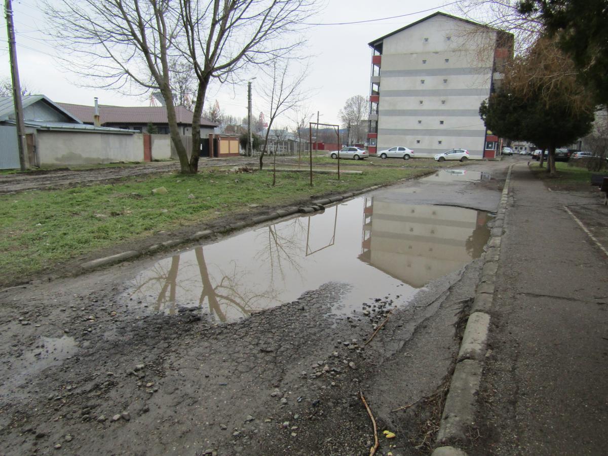 În continuare, zeci de bălți, o porțiune de teren desfundat, noroiul fiind luat pe roți către cartierul de blocuri dar și pe străzile abia asfaltate după atâta amar de ani. Mizerie cruntă este și în apropierea blocurilor, unele total neîngrijite și limitrofe cu un maidan/teren nefolosit. Căruia, impropriu, i se spune strada Odesa. Aceeași imagine a lipsei de civilizație și lângă containerele pentru depunerea selectivă a deșeurilor. Respectivele dotări sunt inutilizabile din cauza băltoacelor din fața lor, iar în proximitate dai de o sistematizare pe verticală neterminată, că tot s-a turnat recent asfalt și pe trotuar. Decorul este nefericit întregit de o parcare auto pe un teren viran, la intersecția cu Str. Celulozei; de macazurile strâmbe și care nu au putut fi furate, iar tot aici două bucăți mari din beton cu armătura din oțel amintesc de o fostă estacadă. Nu lipsesc mormanele de asfalt nepus în operă, un stâlp din beton retezat, cămine de vizitare distruse și fundațiile unor foste garaje pline cu mizerie etc, etc.