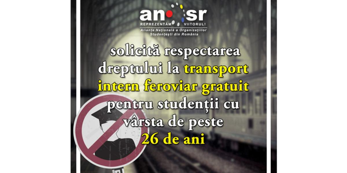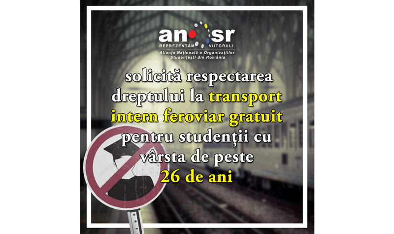 Începând cu anul universitar 2017-2018, studenţii cu vârsta de peste 26 de ani nu mai pot beneficia de gratuitate la transportul feroviar intern, în urma unei decizii a Ministerului Educaţiei. Asta deşi, conform unei hotărâri de guvern, toţi studenţii, indiferent de vârstă, au dreptul de a circula gratis cu trenul.