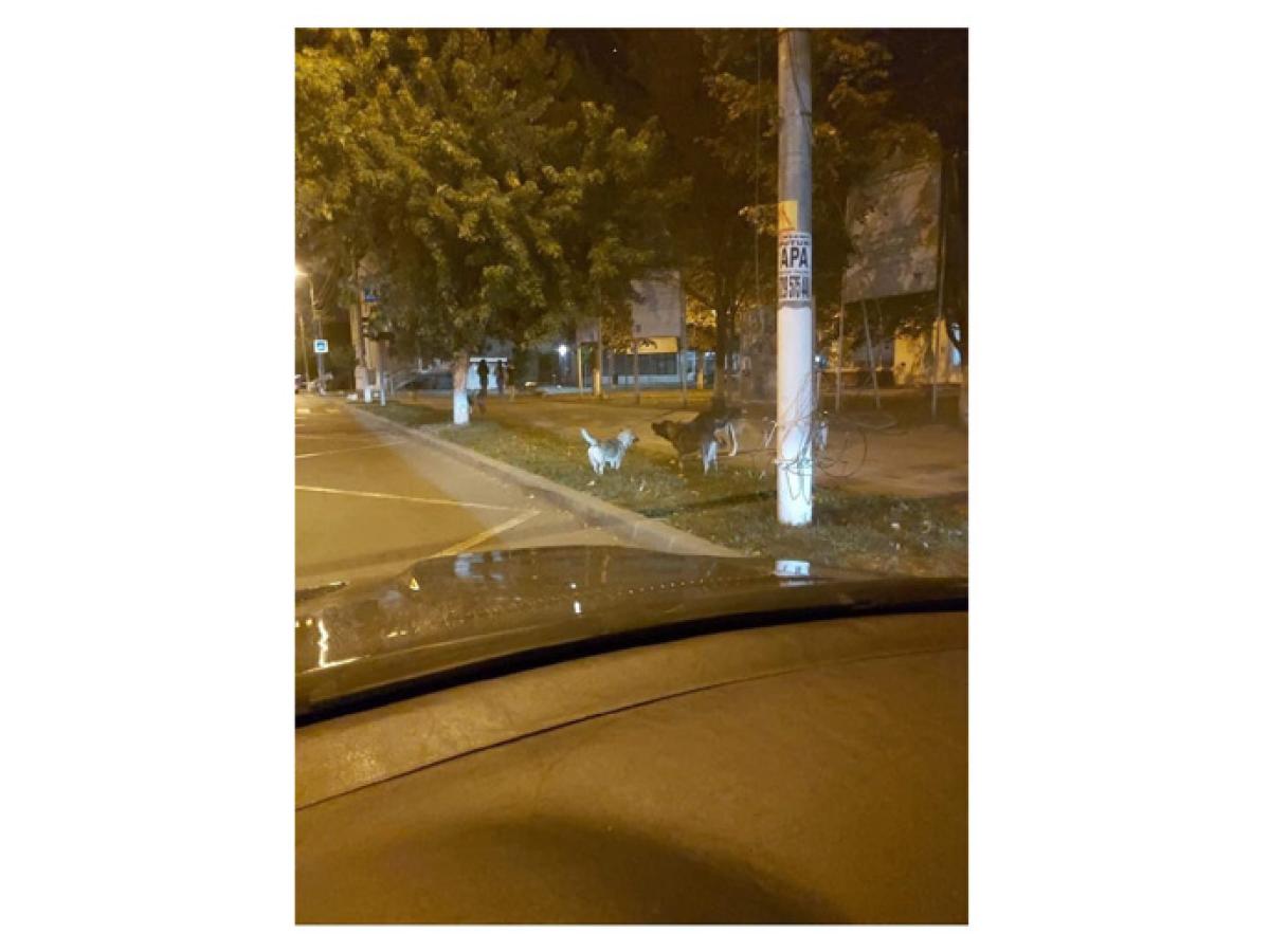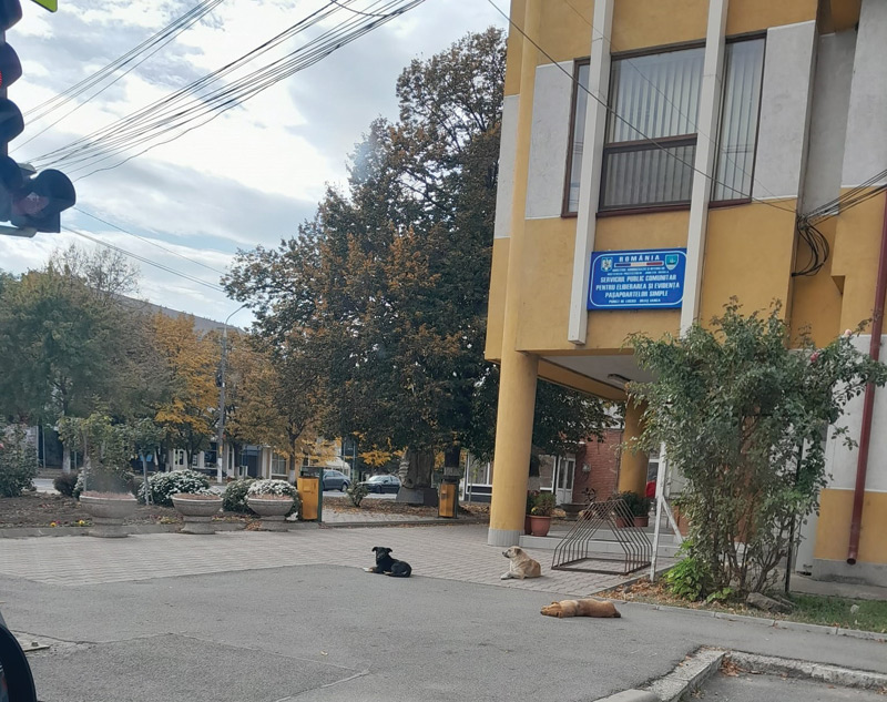 Pentru a-și întări spusele, Boboc a trimis și o serie de fotografii în care se văd mai multe patrupede cum stau nestingherite în fața Primăriei din oraș.