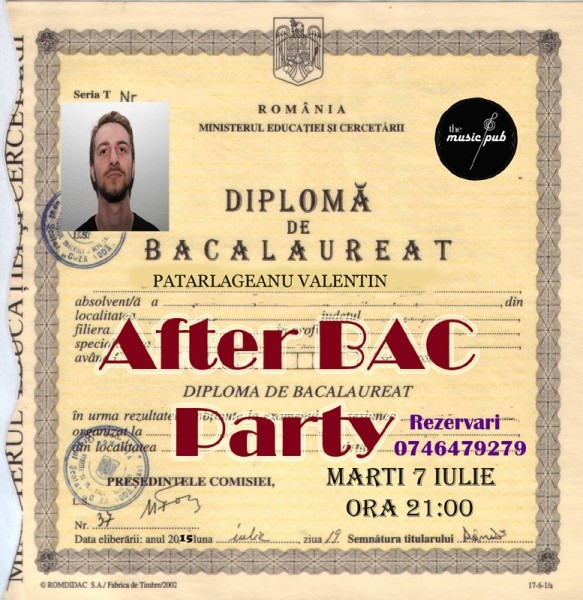 Absolvenţii de liceu brăileni, care îşi vor afla astăzi notele obţinute la bacalaureat, au parte de o surpriză menită să îi destindă după stresul zilelor de examen. The Music Pub - La Terrasse (Str. Vadul Schelei, nr. 17) a pregătit în această seară o megapetrecere organizată strict pentru aceştia şi prietenii lor, după afişarea rezultatelor, sub genericul simplu: "After BAC Party". De reţinut că evenimentul va începe la ora 21:00, iar intrarea este liberă. Petrecerea din această seară nu reprezintă însă singura surpriză a săptămânii din partea The Music Pub. Miercuri, 8 iulie, aceeaşi locaţie va găzdui un spectacol "3 în 1": Stand Up Comedy, magie şi ventrilocie. Practic, magicianul Paul Lungu, comedianul Cristian Dumitru şi ventrilocul Eduard vor încinge atmosfera în cadrul unui eveniment intitulat Funny Magic Puppet Show - Stand Up Comedy.