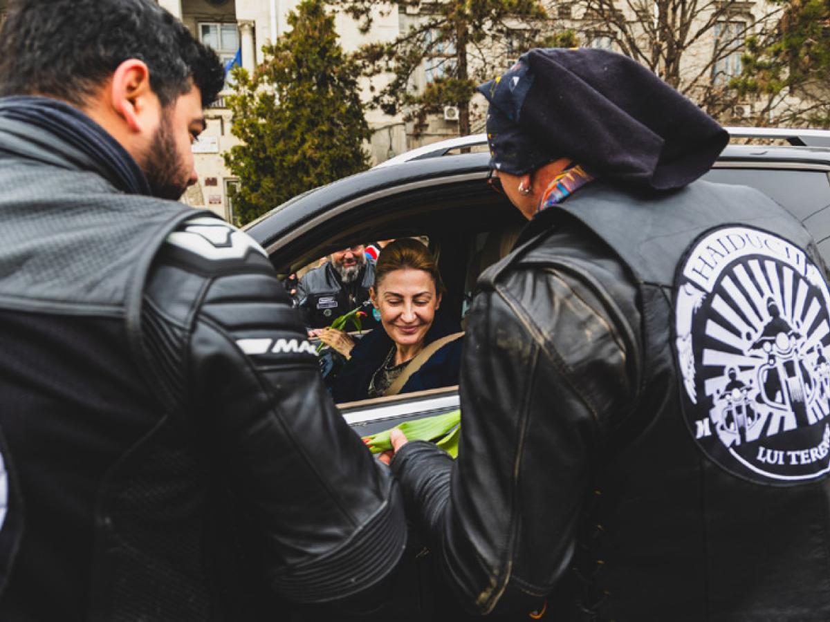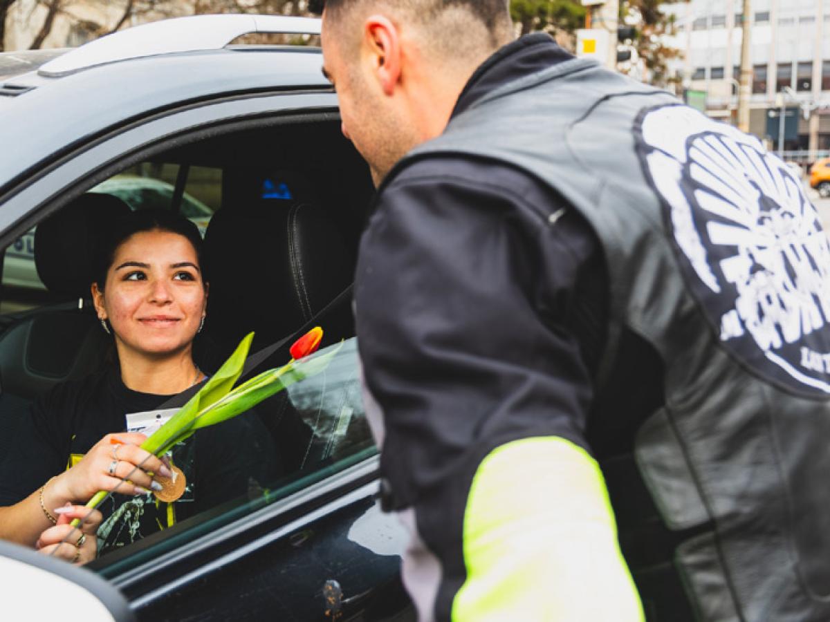 Sâmbătă, 2 martie, brăilencele aflate la volan pe Calea Călărașilor, în zona Palatului Agriculturii, au avut plăcuta supriză de a primi câte o floare și un mărțișor personalizat de la motocicliști.