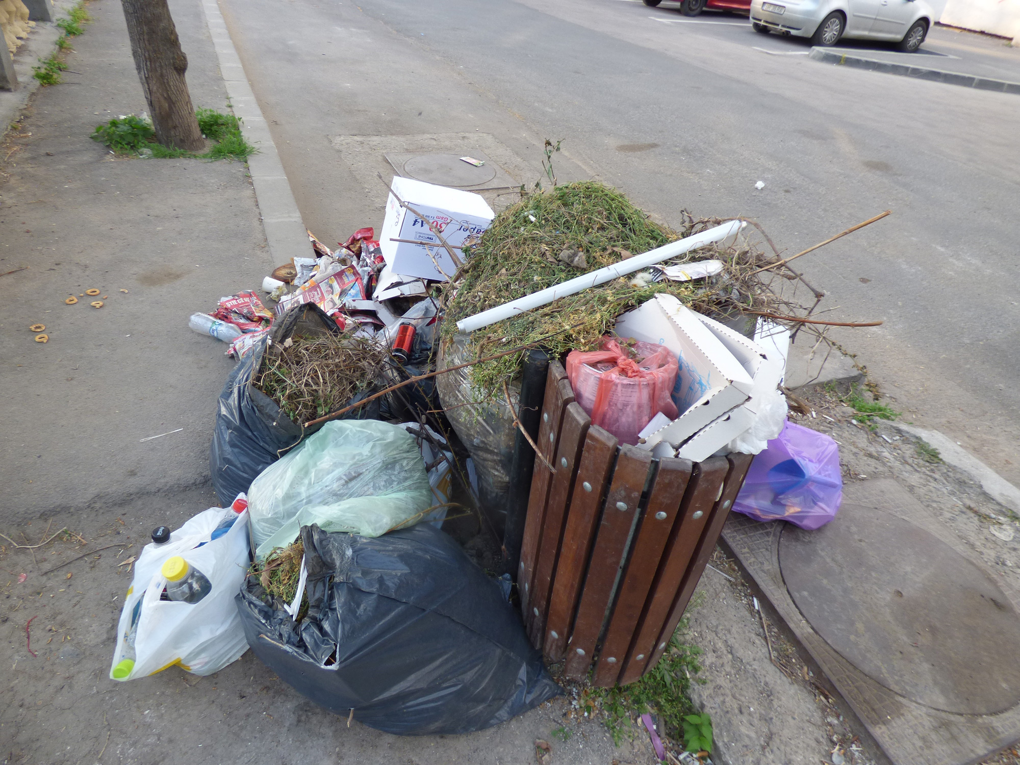 Într-o zonă centrală şi destul de circulată a Brăilei, la capătul străzii Griviţei, spre sediul ANAF, trenează de mai multă vreme trei aspecte care ar fi trebuit să dea deja de gândit edililior noştri. De exemplu, spre blocurile Hexagoane se adună zilnic mari grămezi de gunoi (inclusiv stradal), iar la o privire mai atentă vezi tot felul de sticle, peturi, doze, pahare din plastic etc, care au sufocat un biet coş de gunoi montat acolo pentru oameni civilizaţi. Nu mai vorbim că, la sfârşit de săptămână, muntele de mizerie şi gunoi creşte nestingherit.